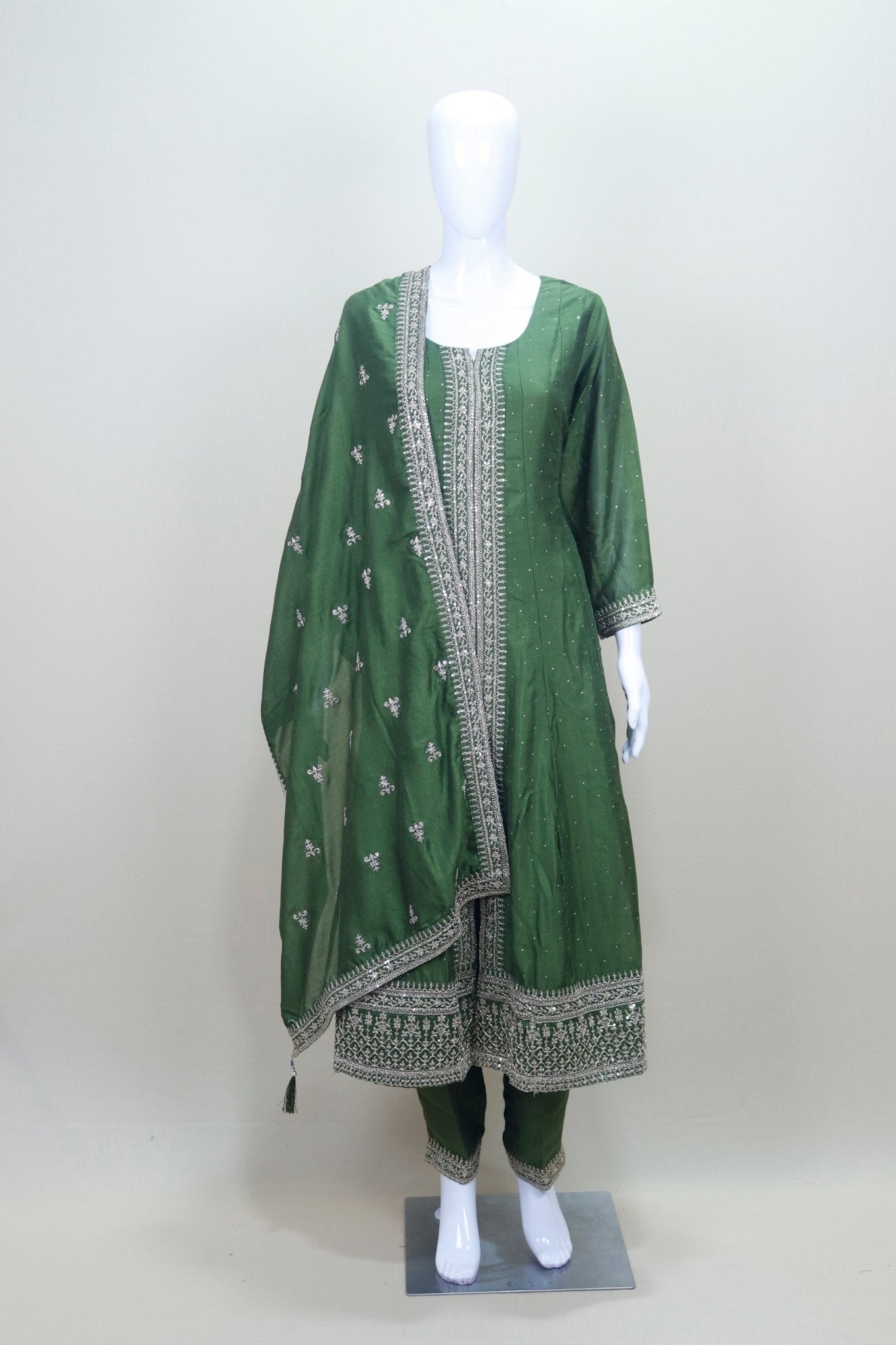 Bottle Green Embroidered Straight Suit Set with Dupatta