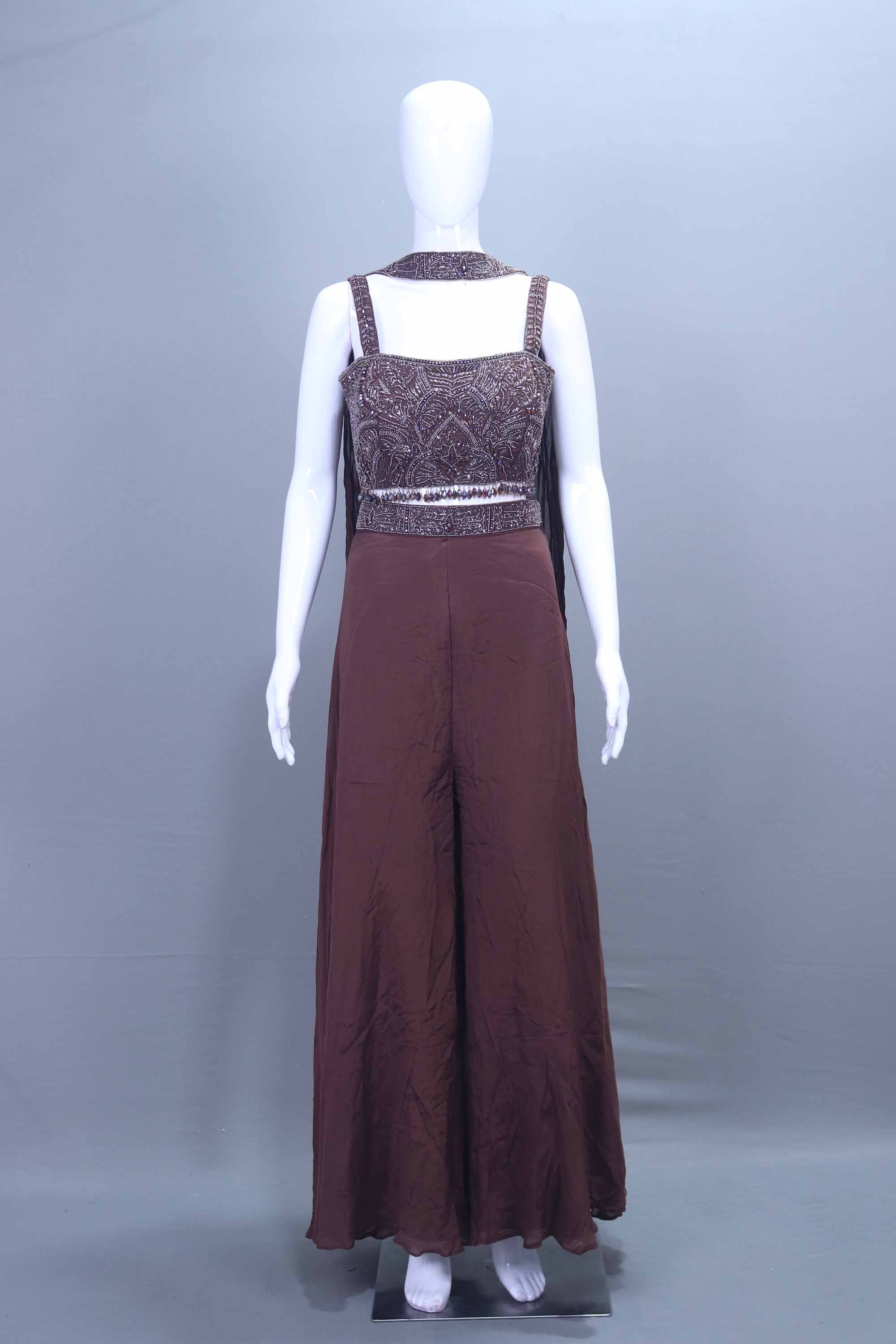 Brown Embroidered Crop Top with Palazzo Set Designer Indo Western