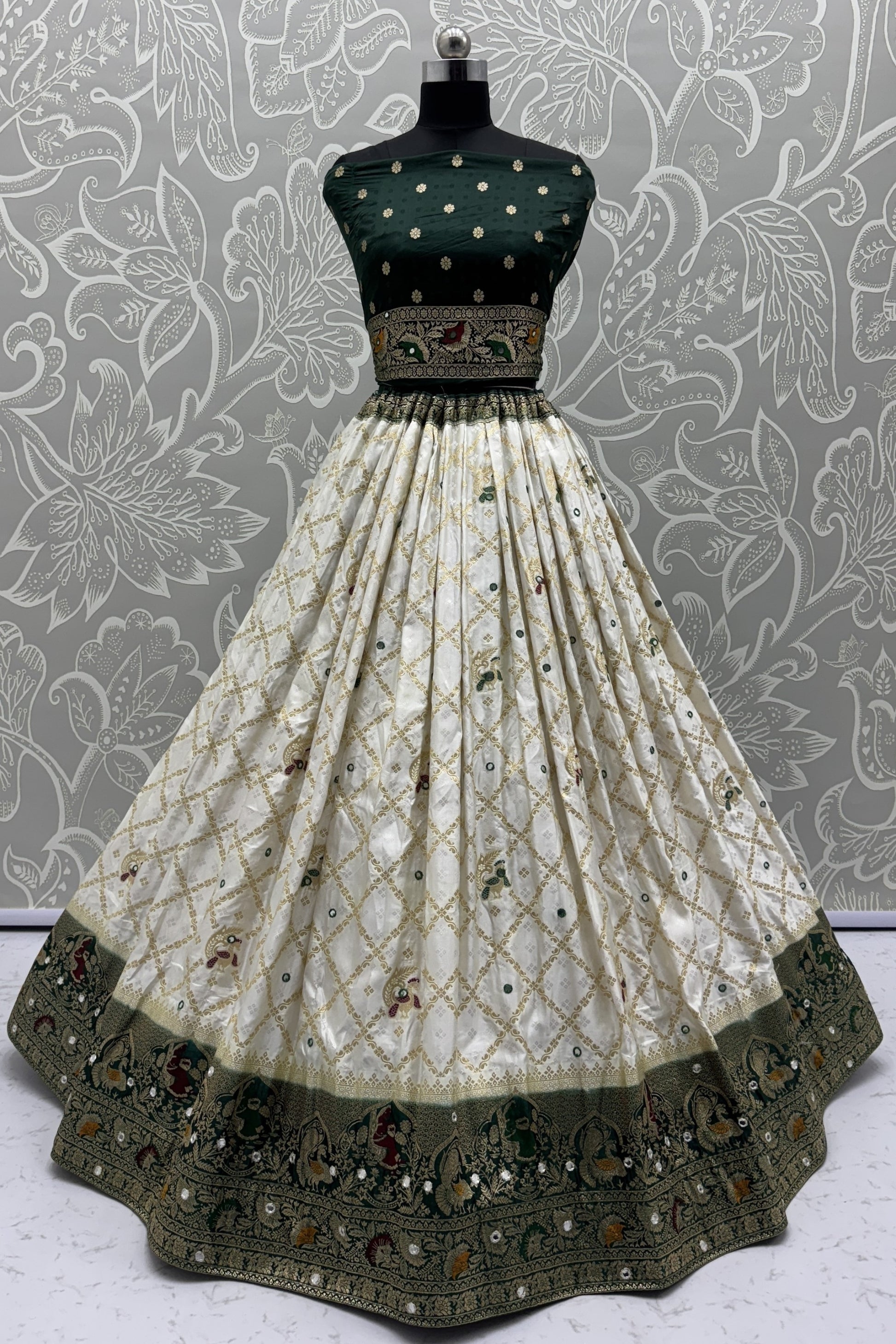Dark Green and Off-White Georgette Bridal Lehenga Choli with Heavy Zari and Resham Work