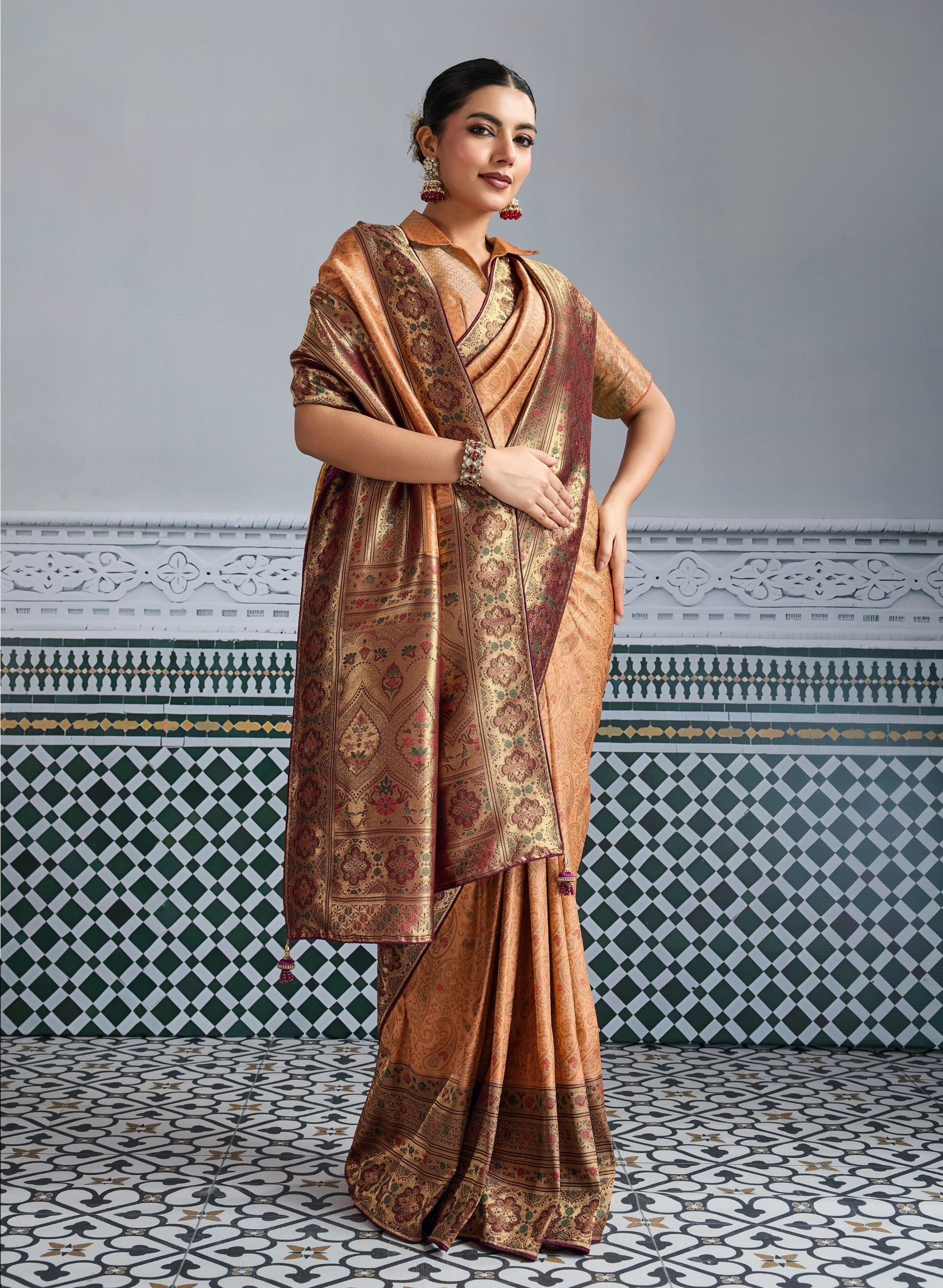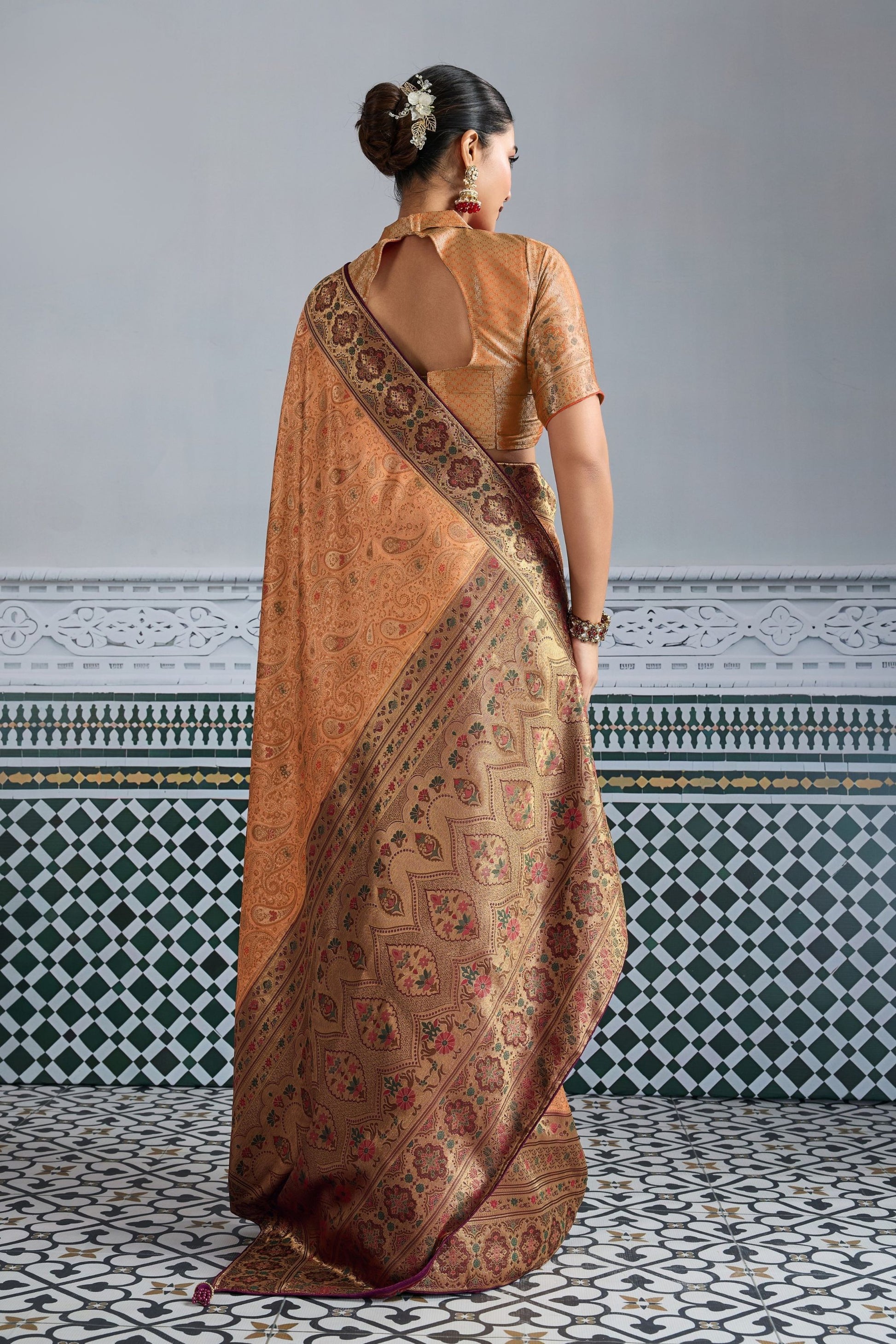 Designer Banarasi Silk Saree in Copper Orange Matching Blouse