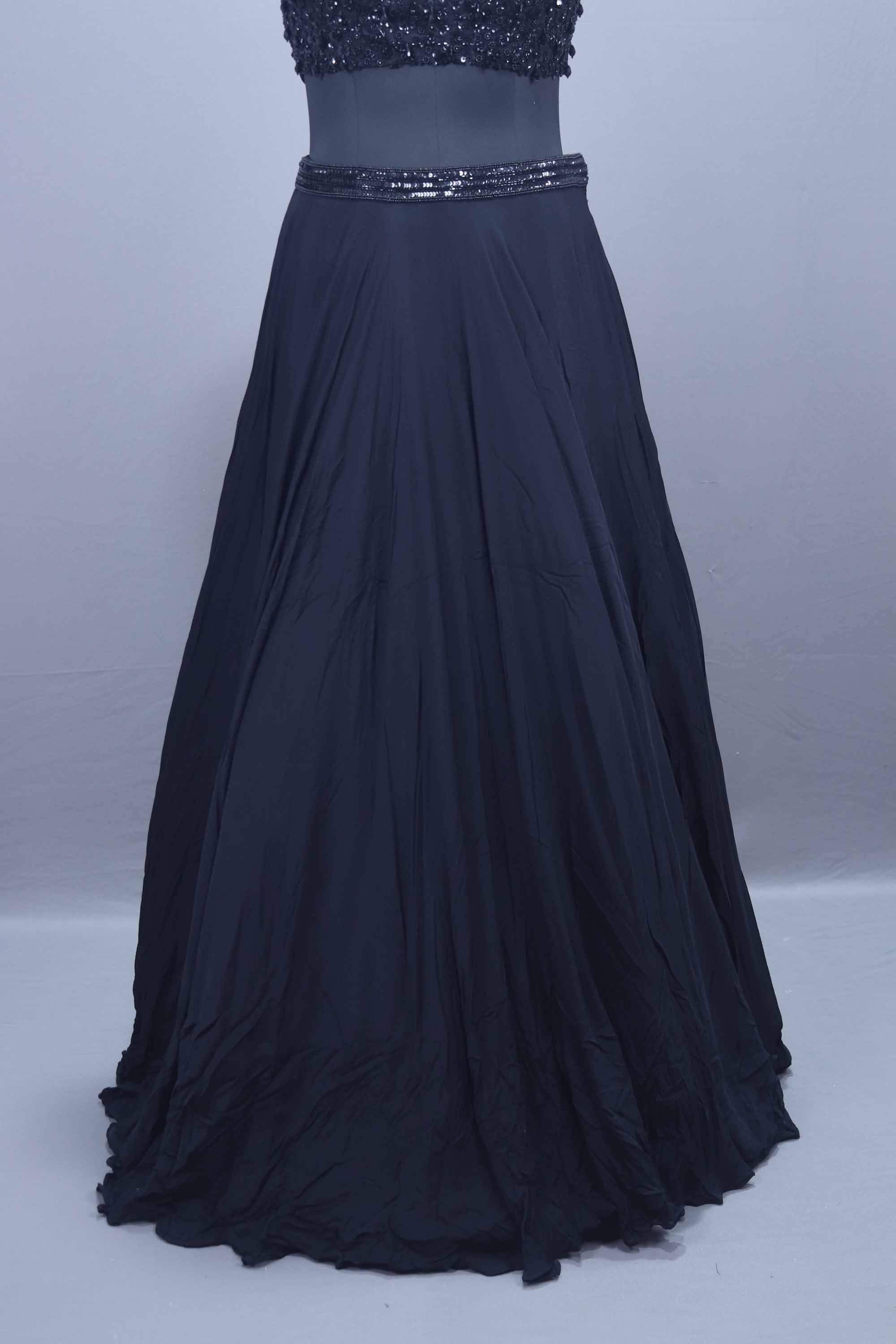 Designer Black Crop Top Skirt Set Stylish Party Wear