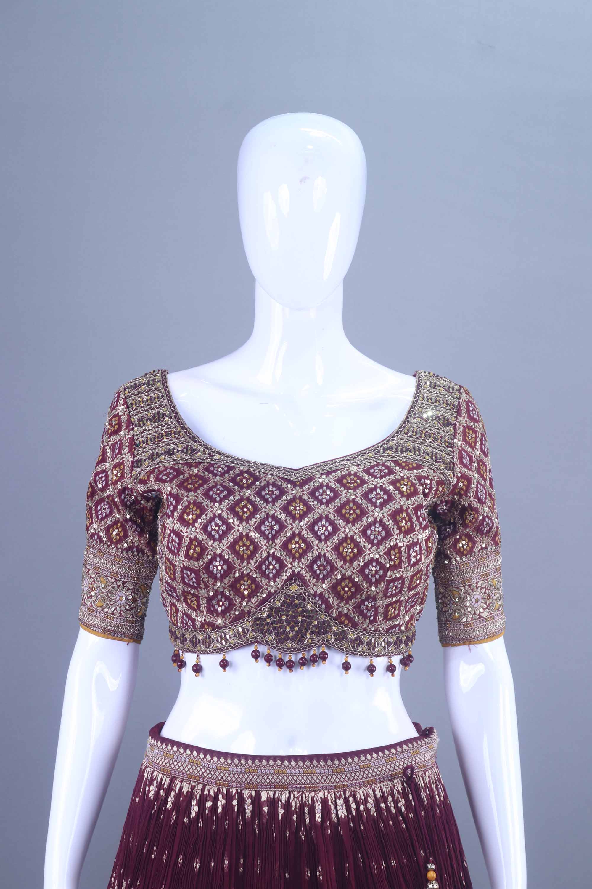 Designer Maroon Bandhani Silk Lehenga Choli with Heavy Blouse
