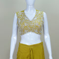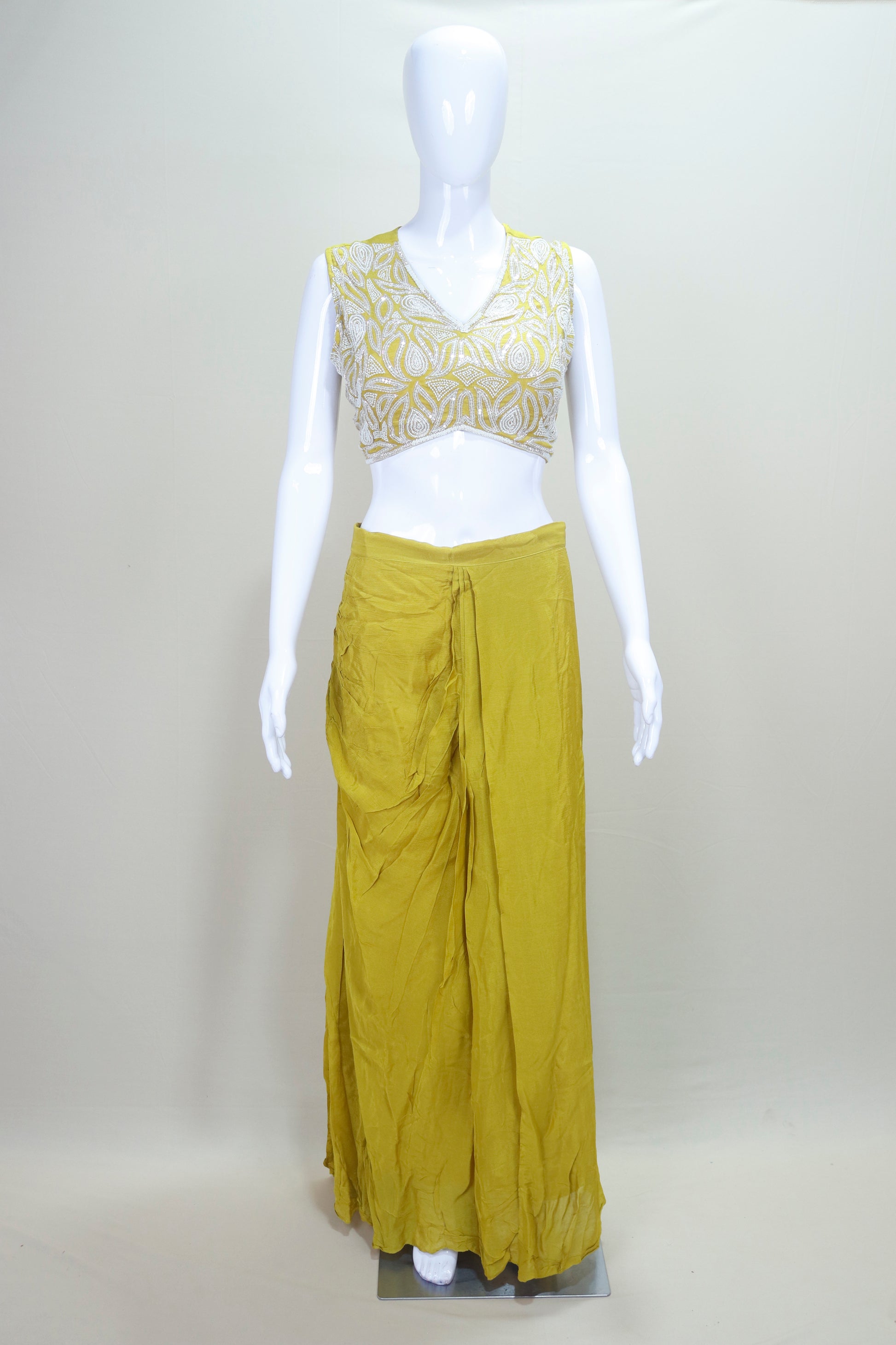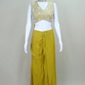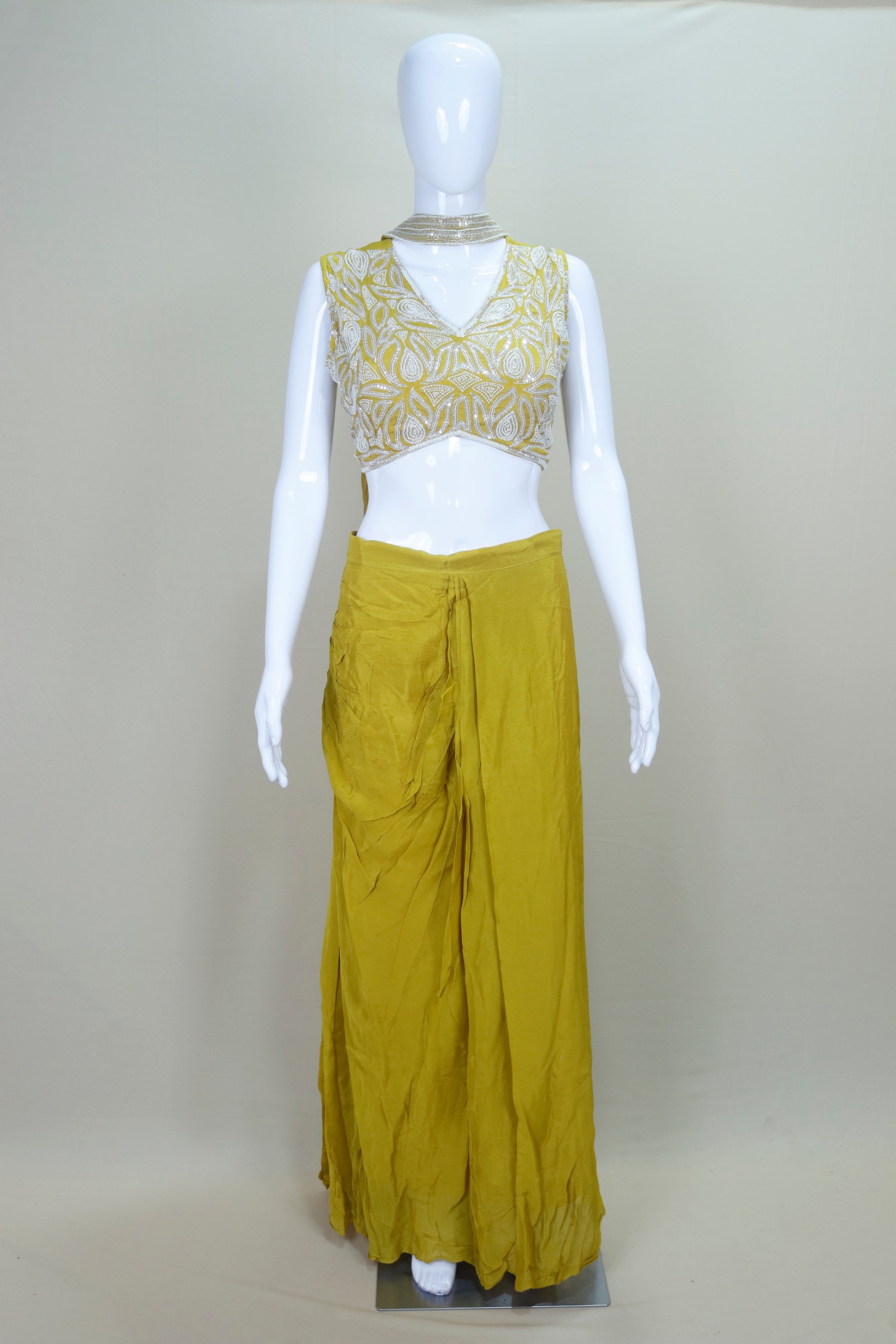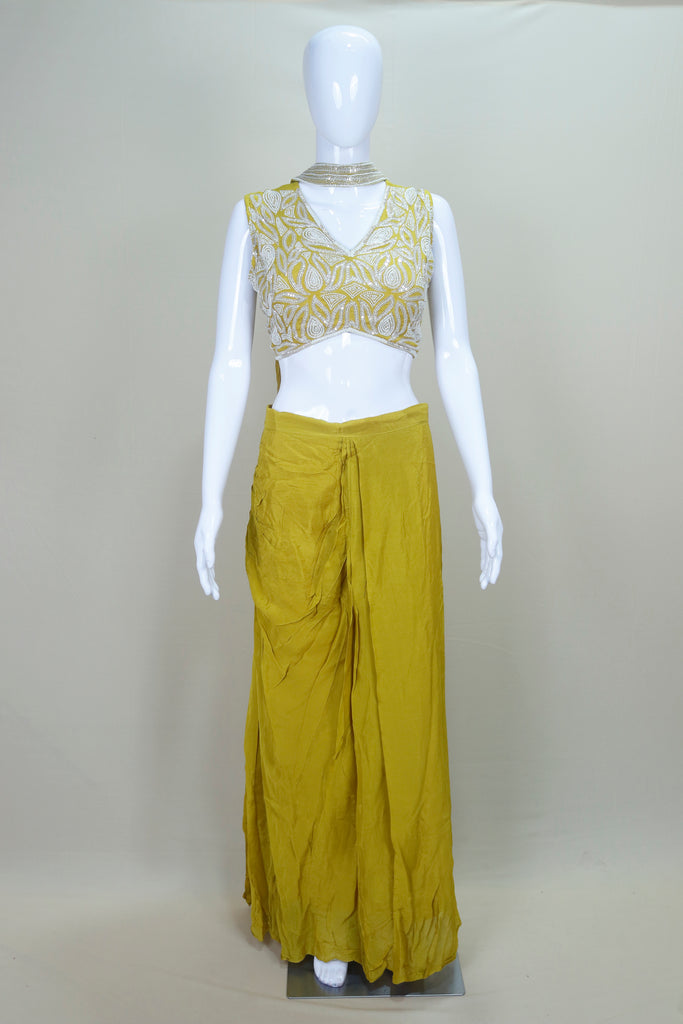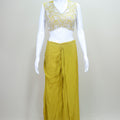 Designer Mustard Yellow Drape Skirt Crop Top Blouse for Party Festive Wear