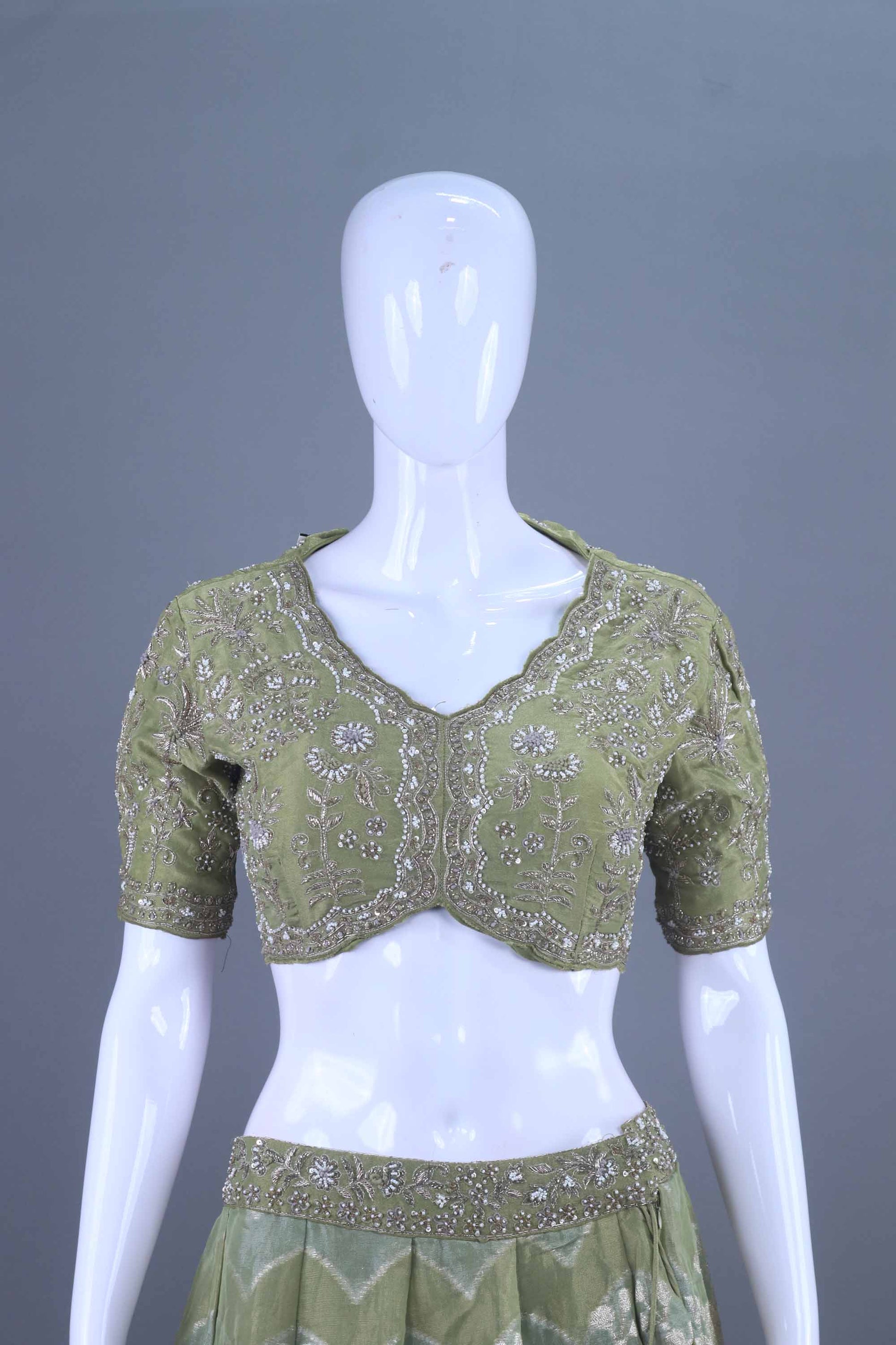 Designer Olive Green Silk Lehenga Choli with Tassel Detailing Dupatta