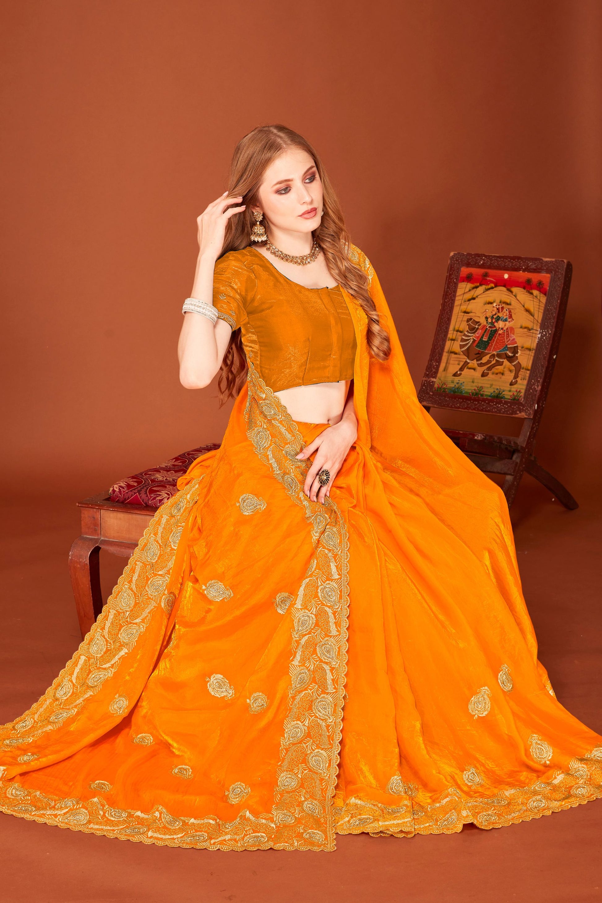 Elegant Orange Silk Saree with Golden Embroidery Designer Orange Silk Saree For Wedding and Party Wear Step into timeless elegance with this orange silk saree beautifully adorned with golden embroidery and a detailed designer border. Perfectly blending traditional artistry with modern charm, this saree is ideal for weddings, receptions, festive celebrations, and party wear. The rich silk fabric ensures a graceful drape, while the vibrant orange hue radiates confidence and sophistication.