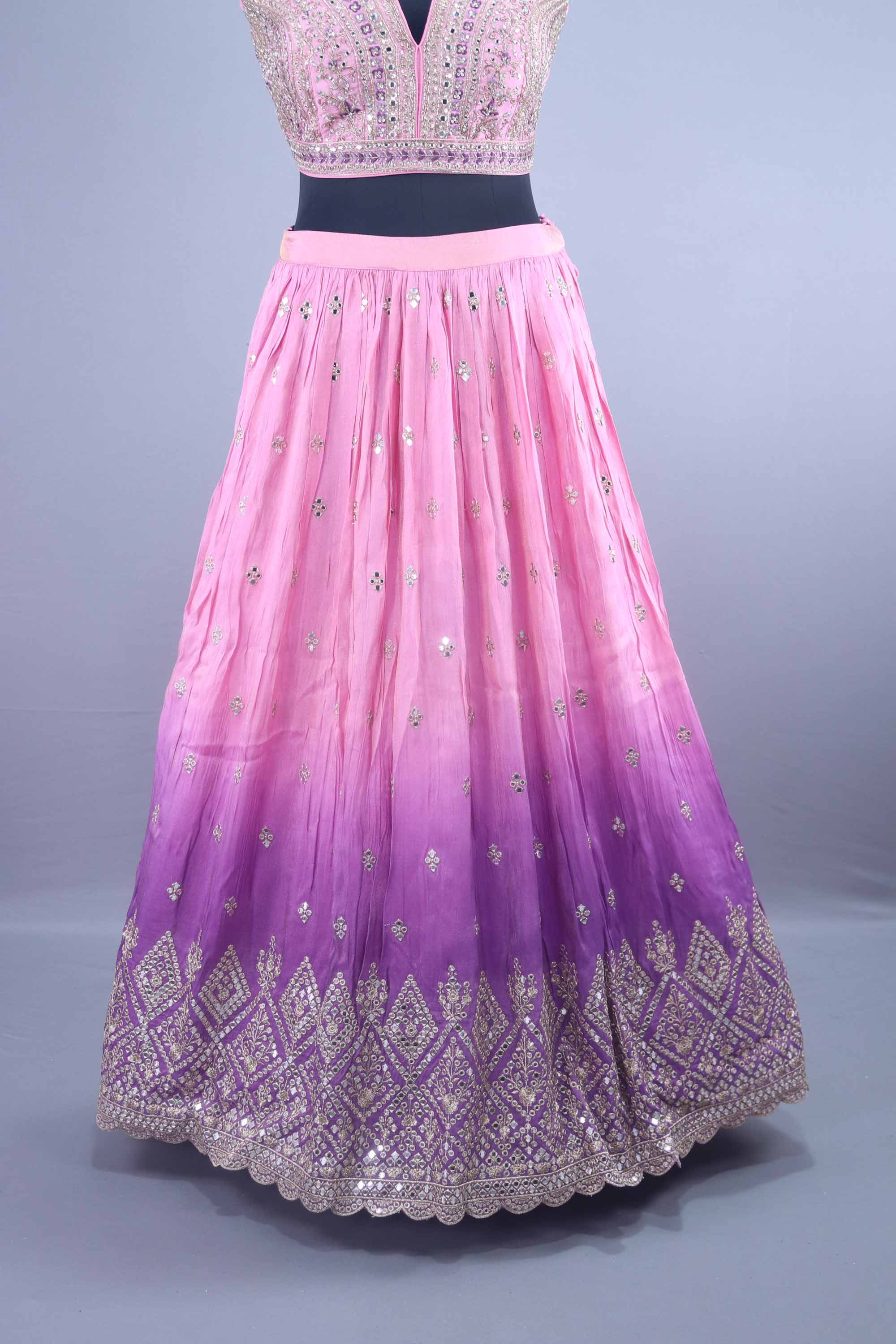 Designer Pink and Purple Ombre Embroidered Silk Lehenga Choli with Dupatta