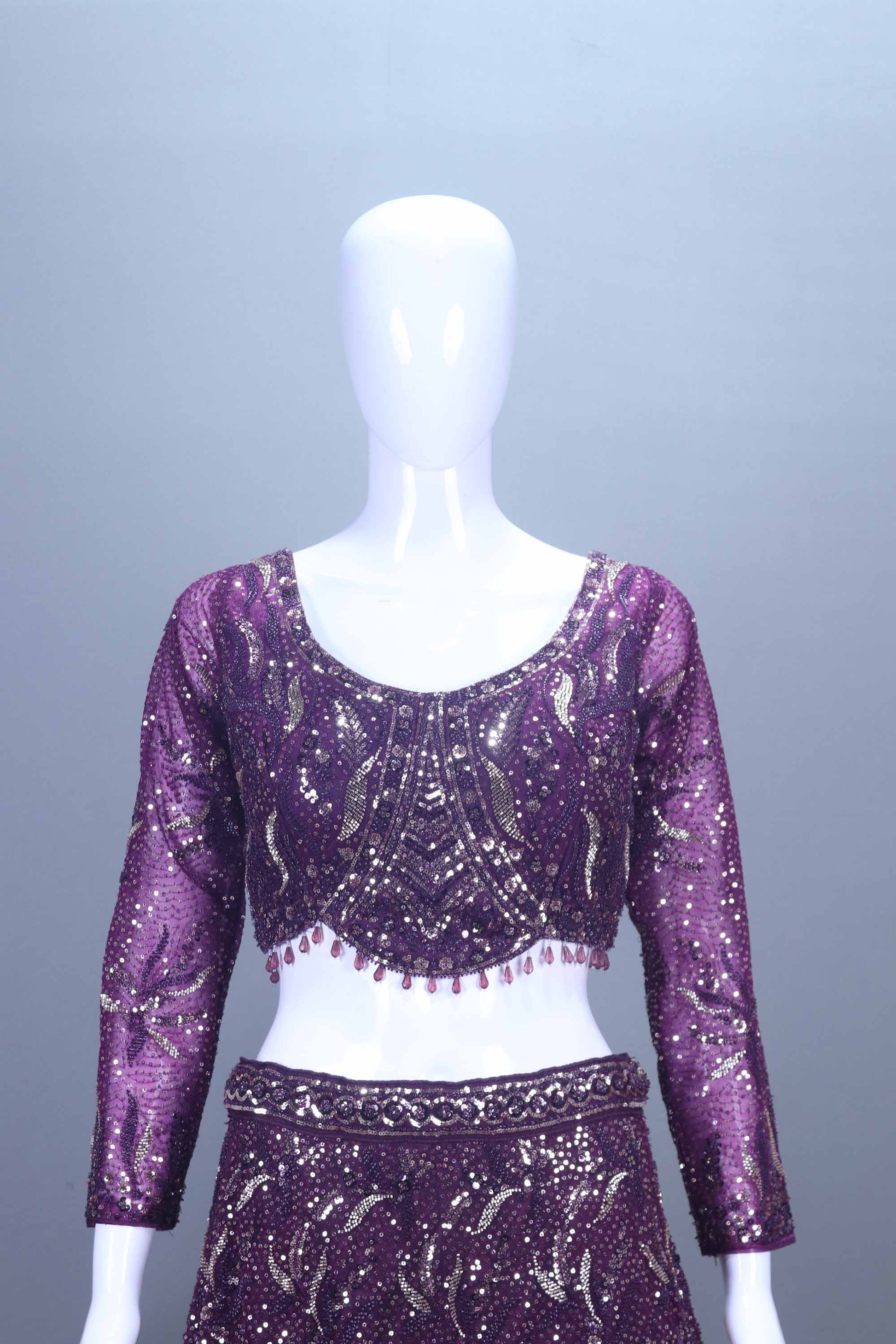 Elevate your festive and bridal wardrobe with this stunning Designer Purple Lehenga Choli with Net Dupatta . Crafted from premium net fabric, this lehenga features intricate sequin and zari embroidery that adds a luxurious sparkle to your look. The richly detailed blouse with full sleeves and a matching embroidered dupatta enhances the outfit’s regal charm. Perfect for weddings, receptions, sangeet, or festive celebrations, this purple designer lehenga choli combines traditional craftsmanship with a modern silhouette. Its flattering flare and elegant finish make it a show-stopping choice for bridesmaids and fashion-forward women alike.