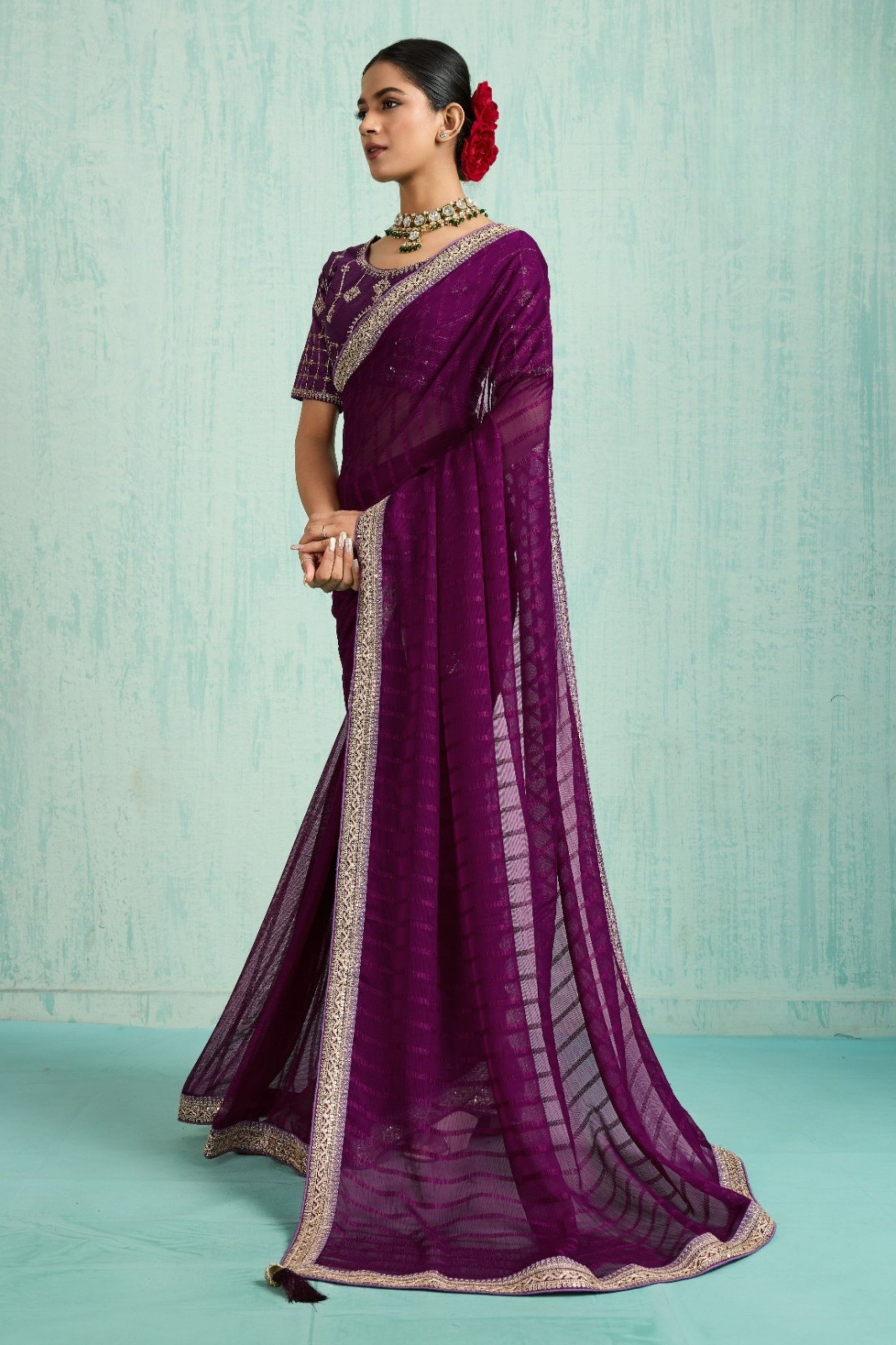 Elevate your ethnic wardrobe with this stunning Designer Purple Net Saree Matching Blouse featuring a beautifully crafted embroidered border. Designed for weddings, parties, and festive occasions, this saree blends modern elegance with traditional charm. The lightweight net fabric drapes gracefully, while the shimmering embroidery adds a touch of sophistication. The saree comes with a matching embroidered blouse piece, perfectly complementing the overall look. Pair it with statement jewelry and heels to make heads turn at any celebration.