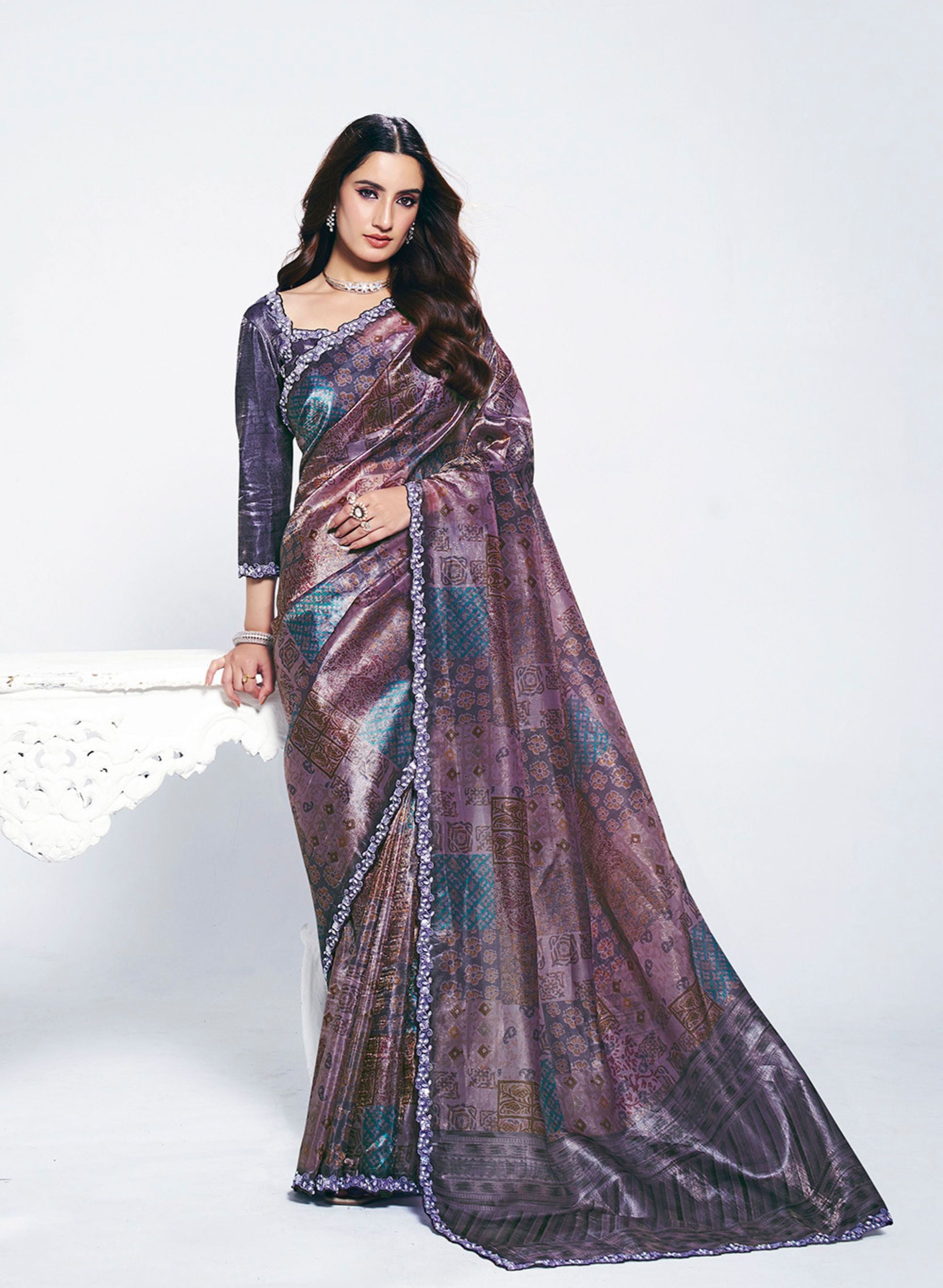 Designer Purple Saree with Matching Blouse Elegant Party Wear