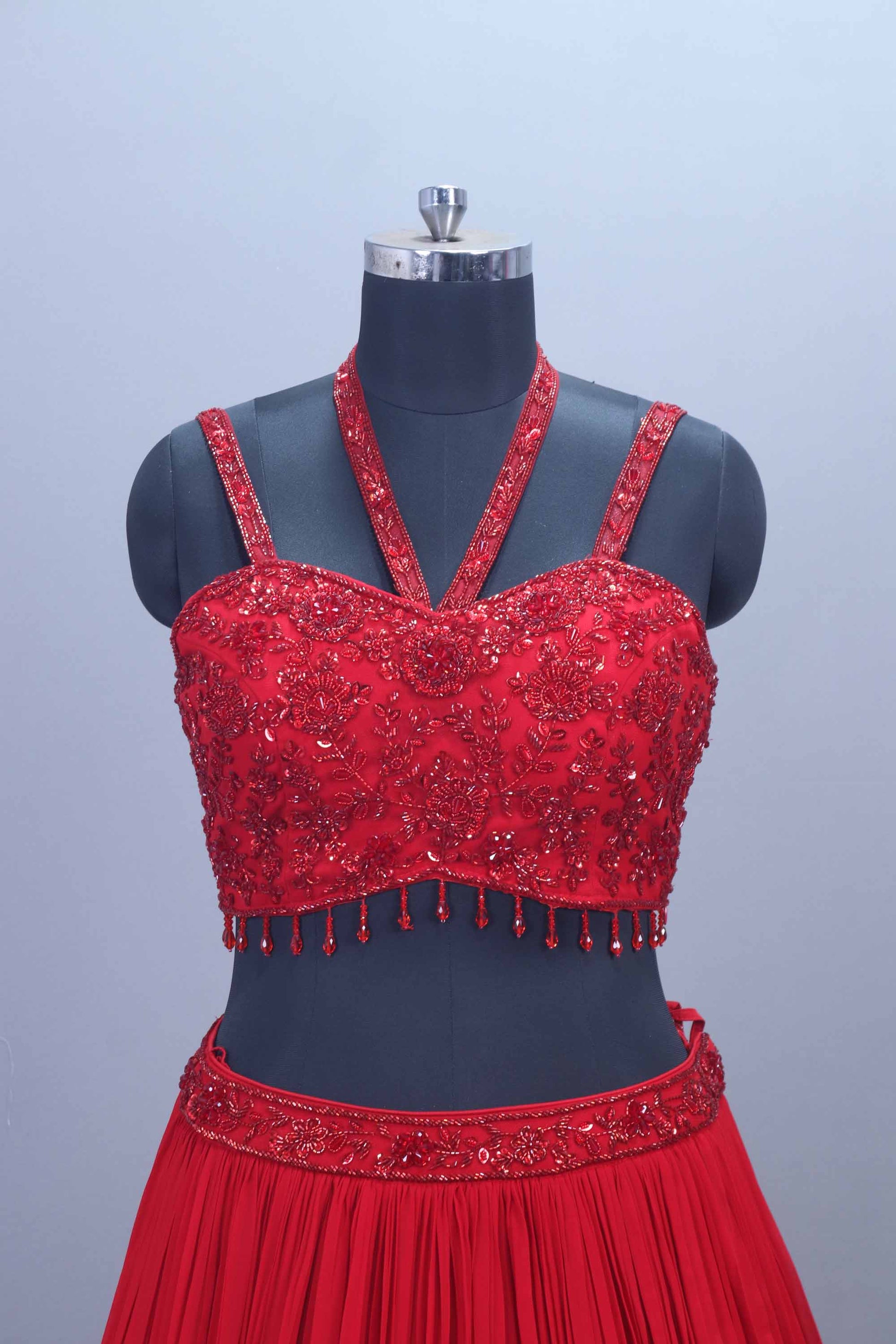 Turn every head with this stunning Designer Red Georgette Embroidered Lehenga Choli with Dupatta , perfect for weddings, receptions, and festive occasions. Crafted from premium georgette fabric, this elegant ensemble features intricate embroidery and shimmering sequin work that add a royal charm to your look. The bold red color enhances your beauty and confidence, making it a must-have for every modern bride and fashion-forward woman. The lehenga’s flowing silhouette offers a graceful drape, while the beautifully embroidered blouse with stylish straps gives a contemporary twist to traditional wear. Paired with a soft net dupatta, this outfit brings together glamour and comfort effortlessly.