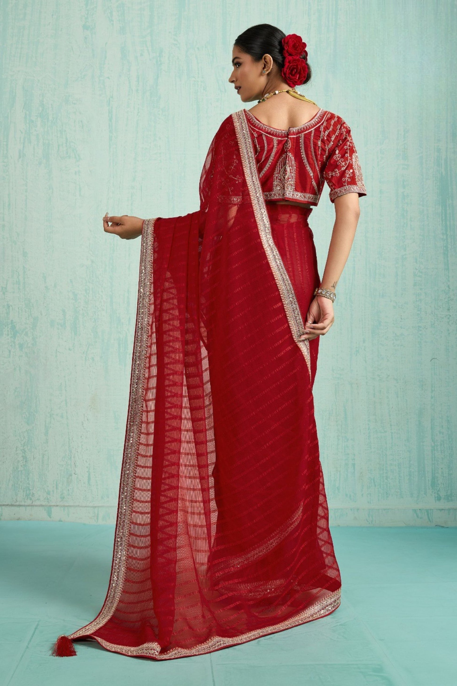 Designer Red Georgette Saree Matching Blouse Party Wear