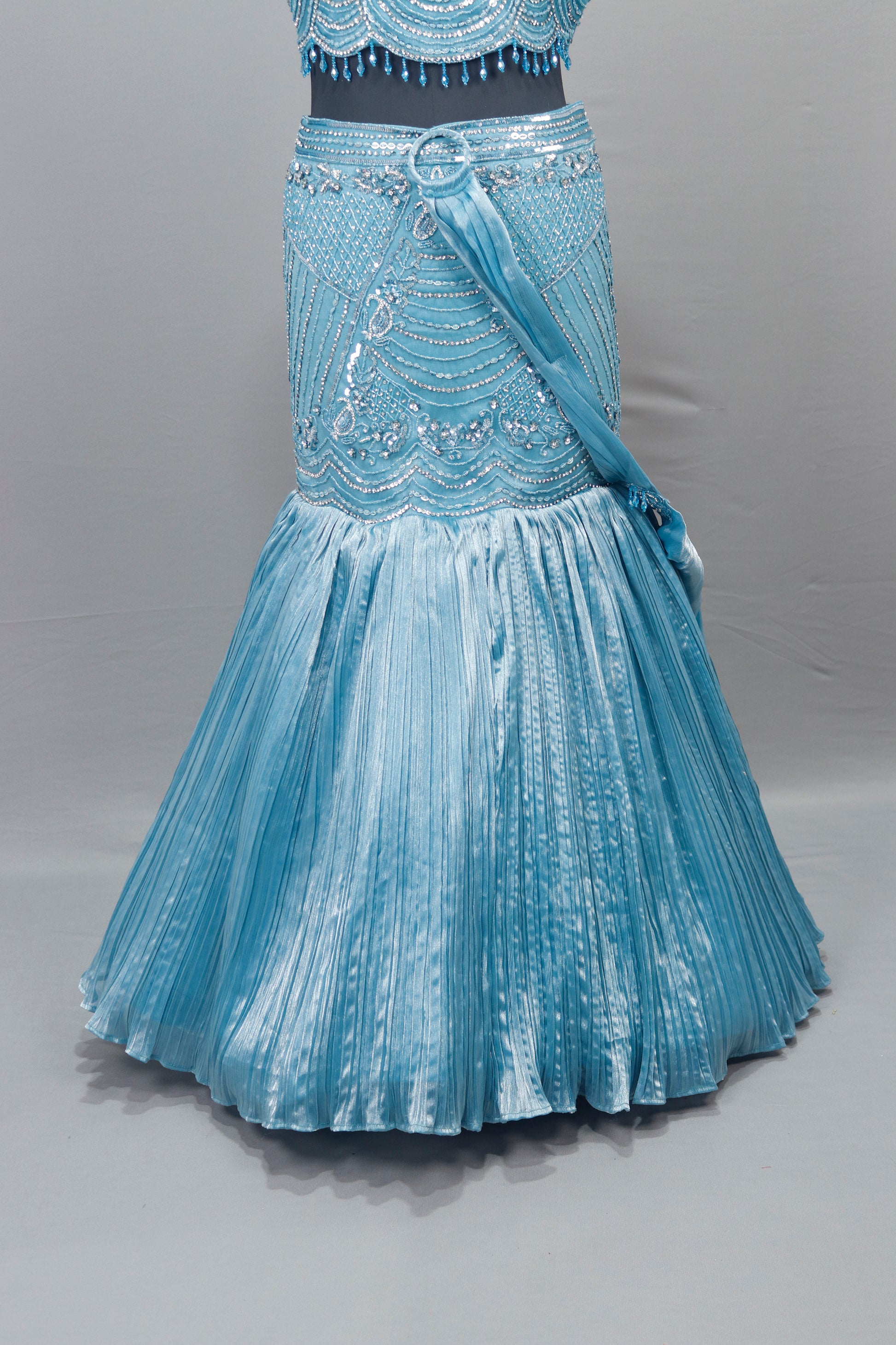 Step into elegance with this Designer Sky Blue Embroidered Lehenga Choli with Dupatta a perfect outfit for weddings, receptions, parties, and festive celebrations. The lehenga features a beautifully pleated mermaid-style skirt with a rich flare, while the blouse is intricately embroidered with sequins, beads, and threadwork for a glamorous touch. The matching dupatta with a ring detail adds a modern twist to this traditional attire. Crafted from premium fabric, this party wear lehenga set ensures both comfort and style, making it a must-have for women who love contemporary ethnic fashion. Pair it with statement earrings and heels to complete your stunning look.