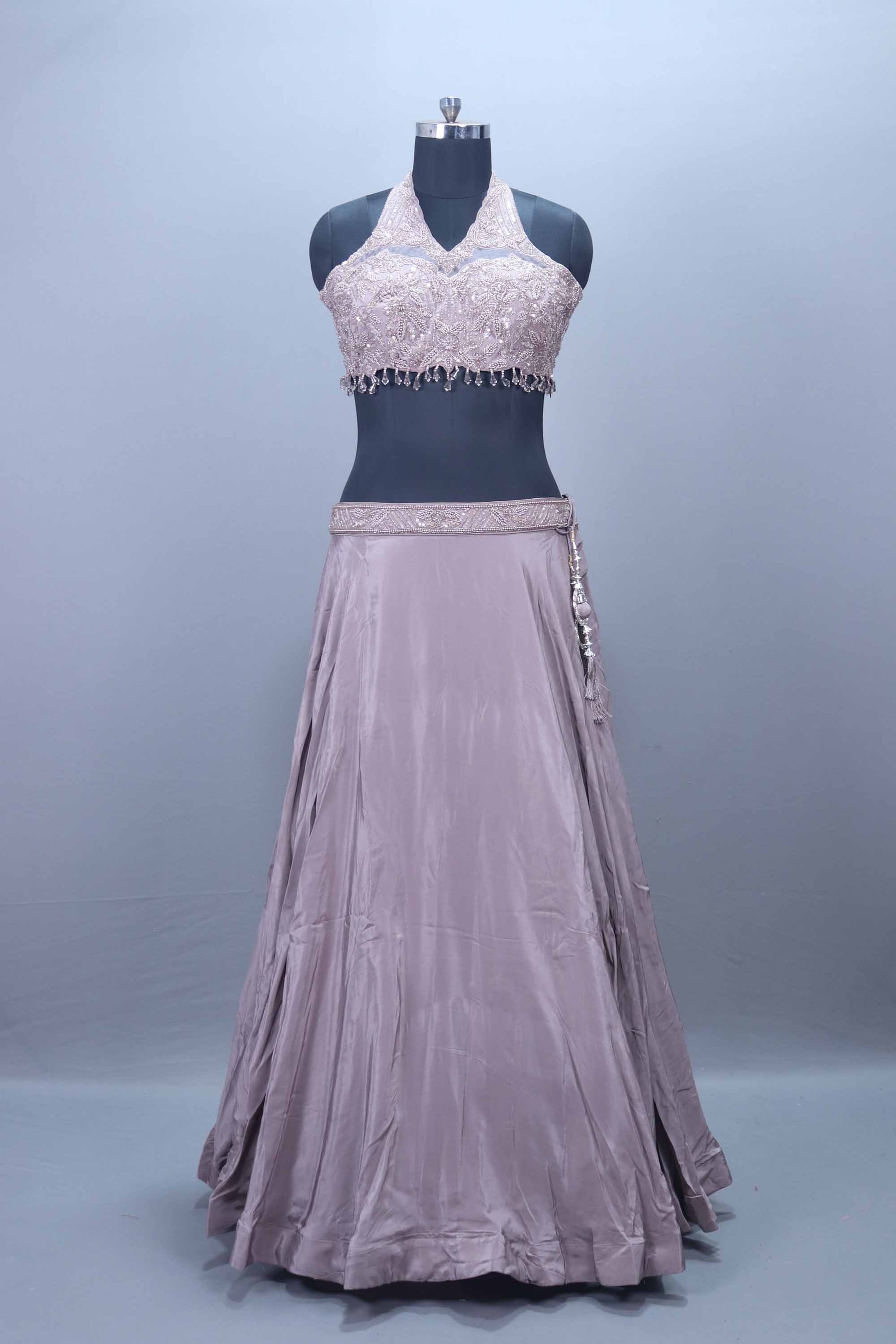 Elevate your festive and wedding wardrobe with this Dusty Mauve Embroidered Designer Lehenga Choli Party Wear crafted to give you a luxurious and modern ethnic look. The outfit features a beautifully embroidered blouse with intricate thread work, shimmering embellishments, and dangling bead detailing that adds extra charm to the neckline. The soft and flowy satin lehenga enhances your silhouette while offering maximum comfort for long celebrations. This lehenga is perfect for weddings, receptions, engagements, sangeet, parties, and festive events. The chic dusty mauve shade makes it a stylish choice for women who prefer subtle elegance with a designer touch.
