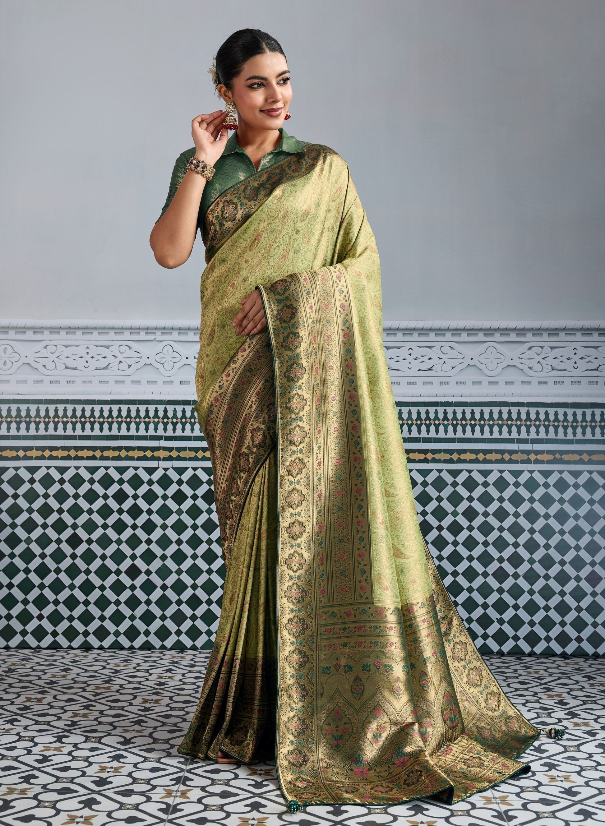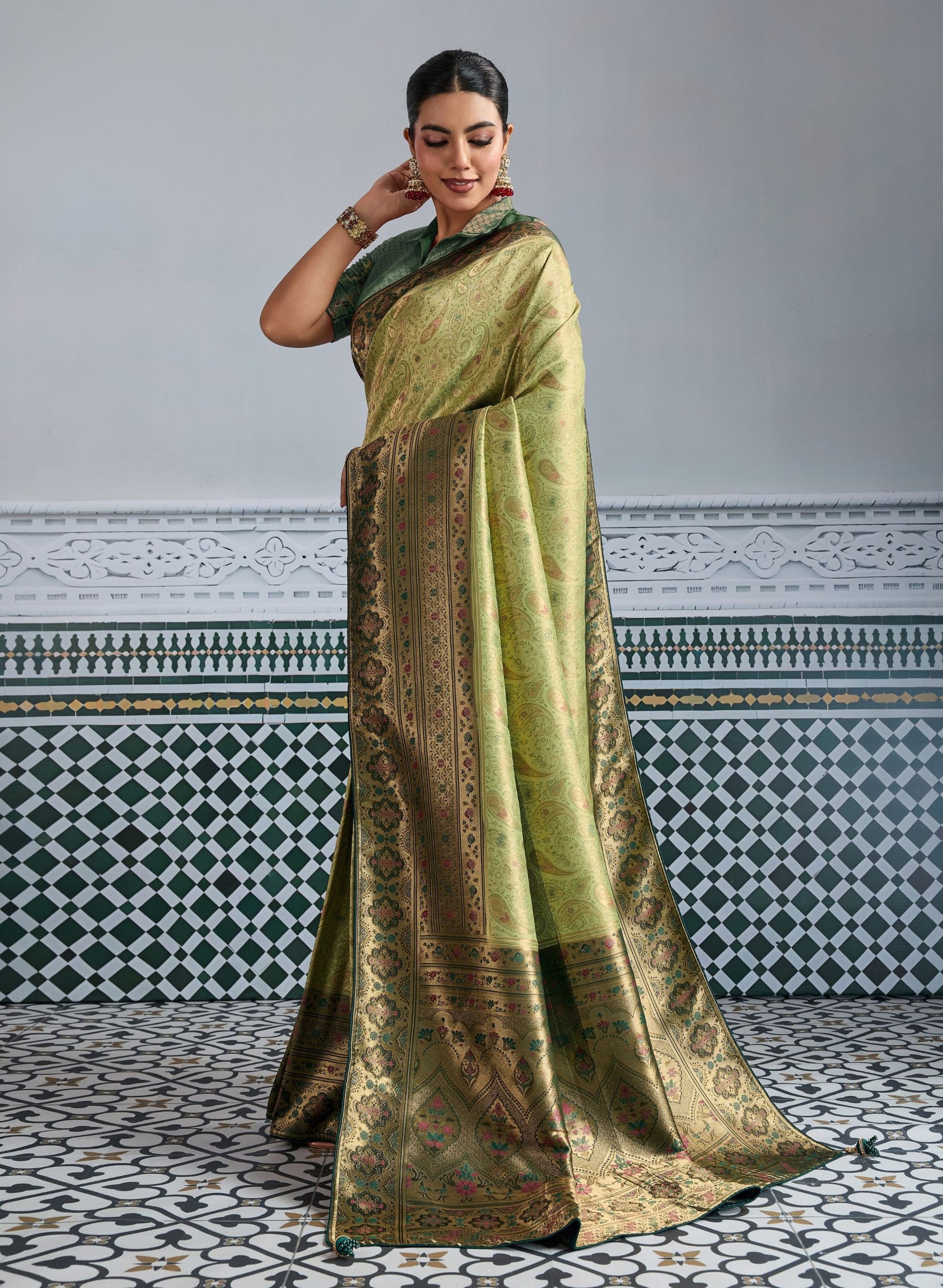 Elegant Banarasi Silk Saree in Olive Green with Golden Zari Weaving and Designer Blouse