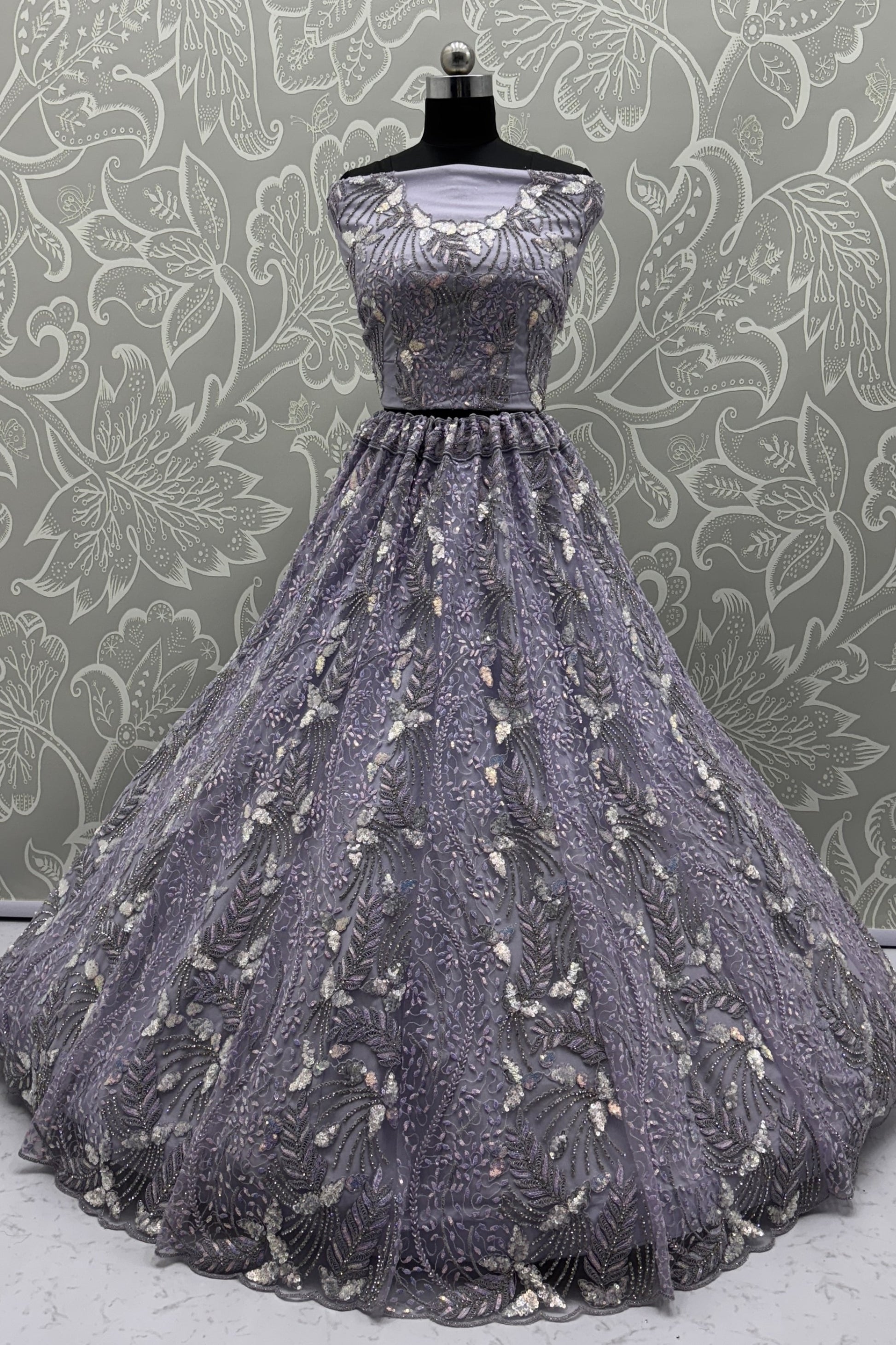 Elegant Lavender Net Bridal Lehenga Choli with Heavy Sequins and Thread Embroidery