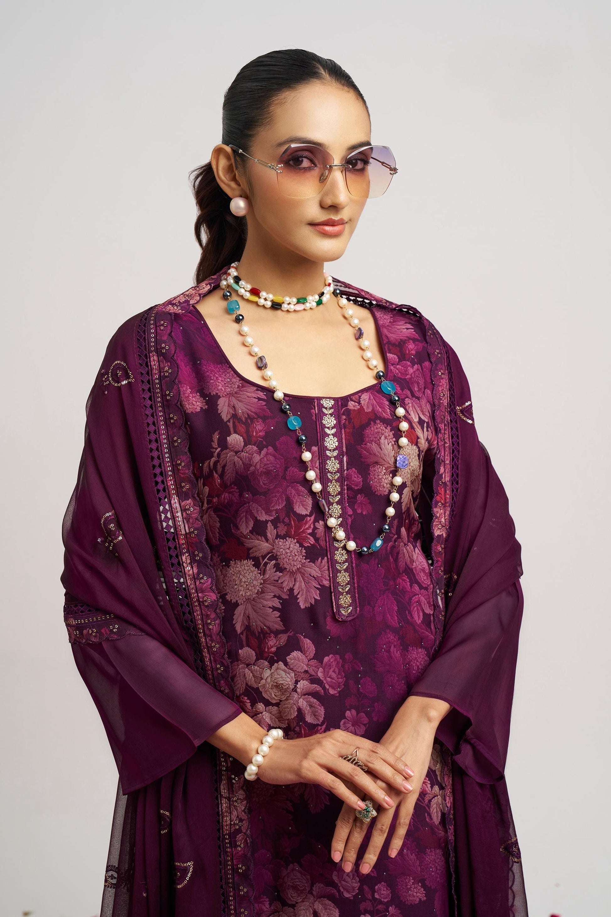 Elegant Purple Organza Embroidered Salwar Suit with Dupatta