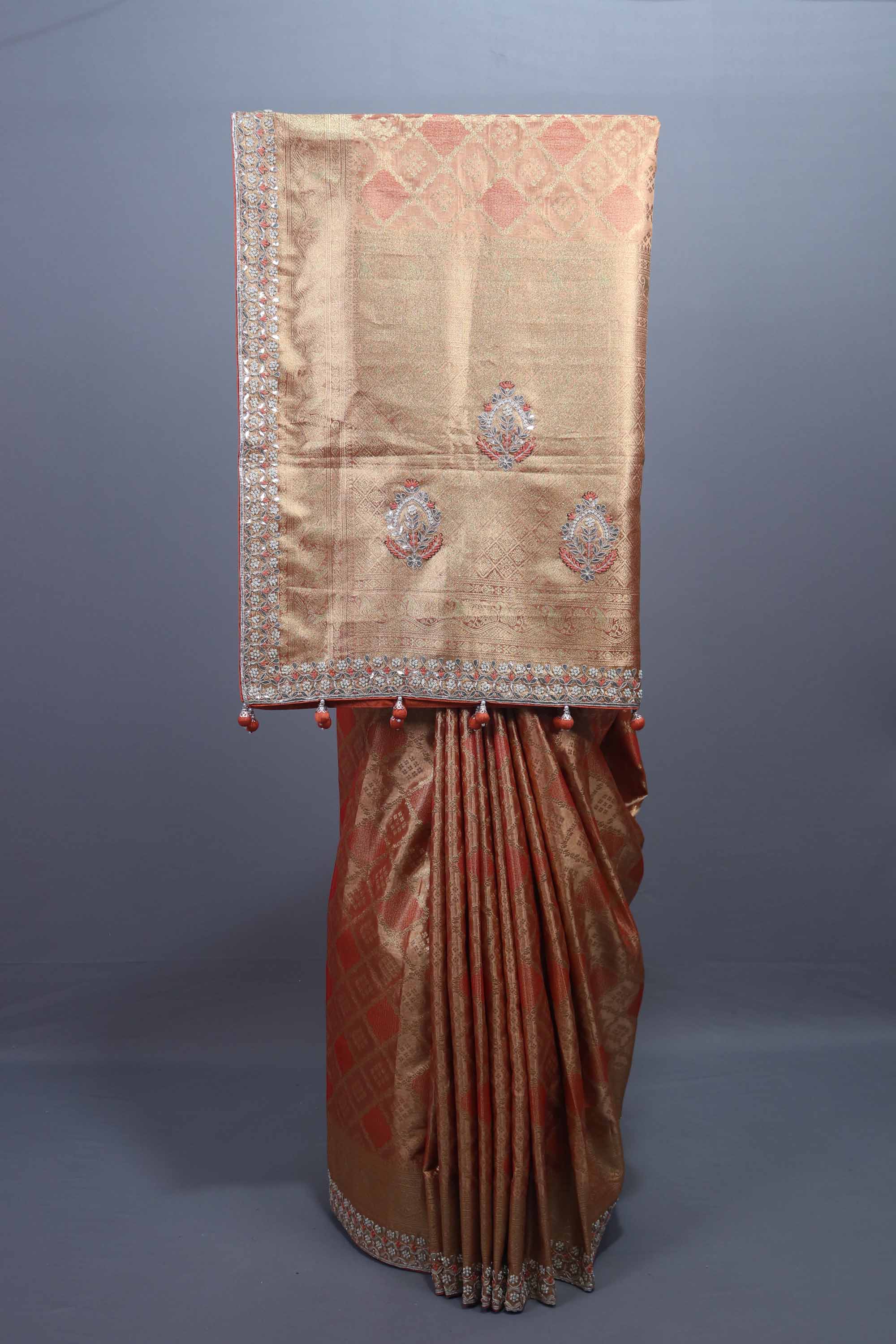 Golden Peach Banarasi Silk Saree with Zari Tassel Pallu