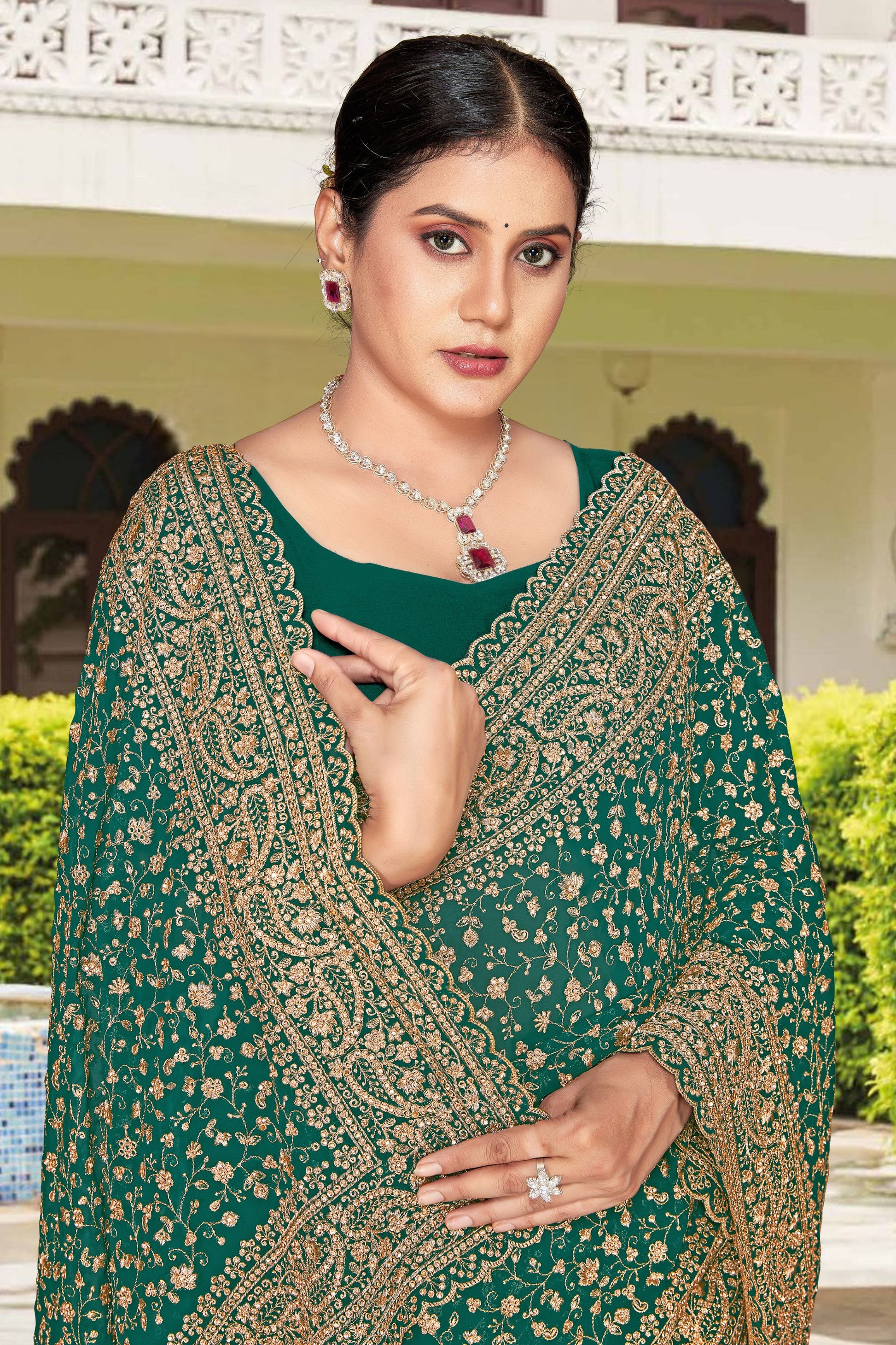 Green Embroidered Saree Heavy Zari Work Designer Saree