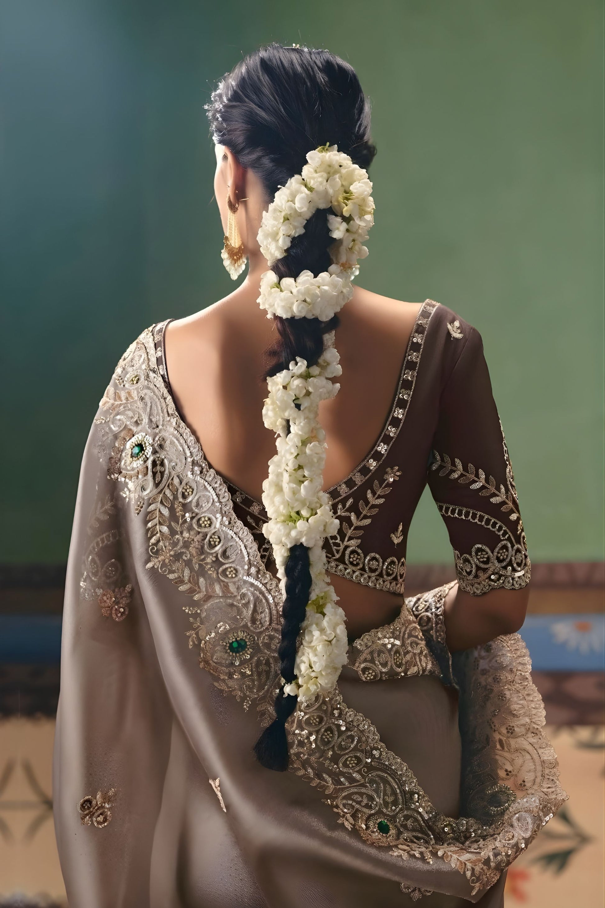 Grey Designer Silk Saree with Heavy Embroidery Border