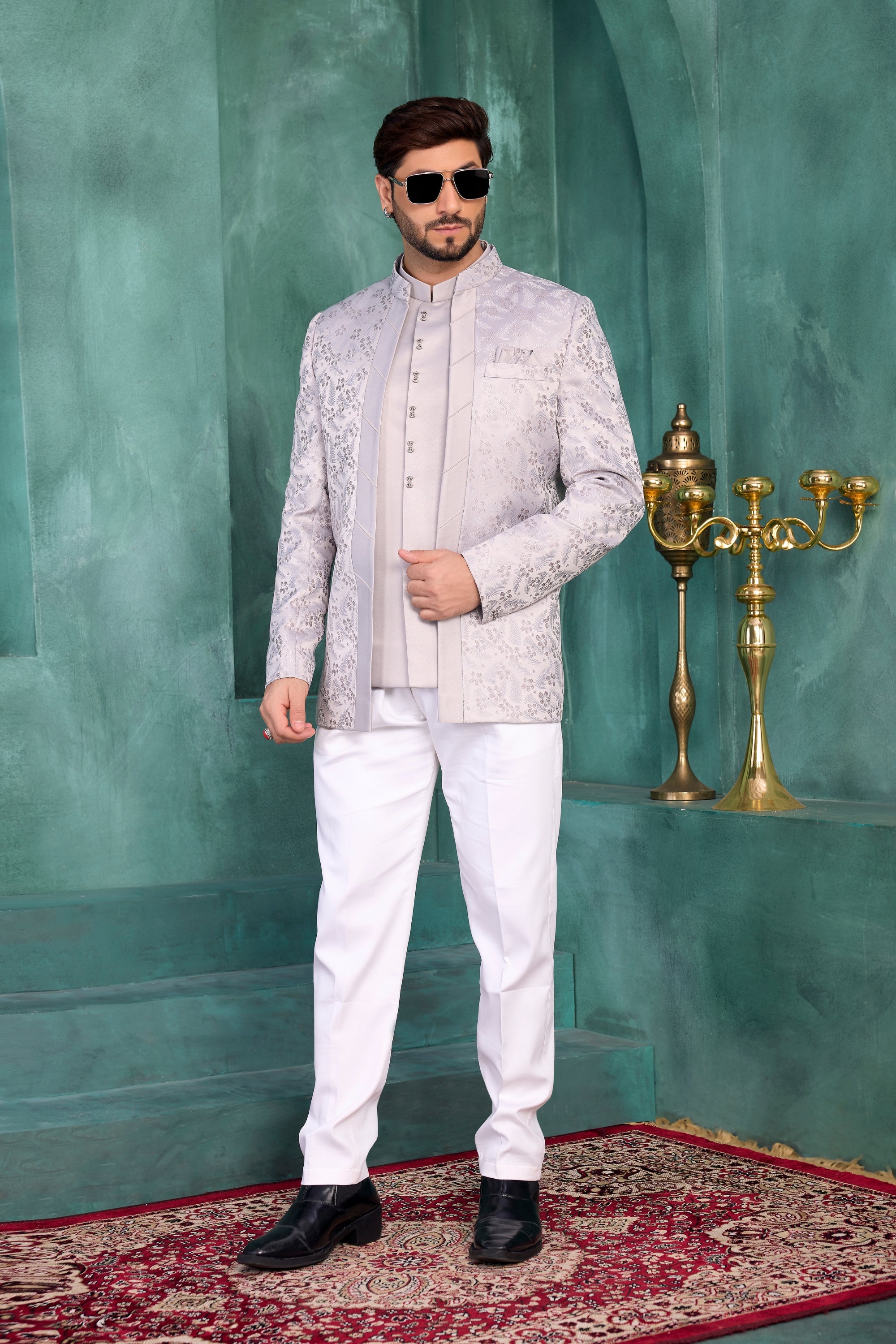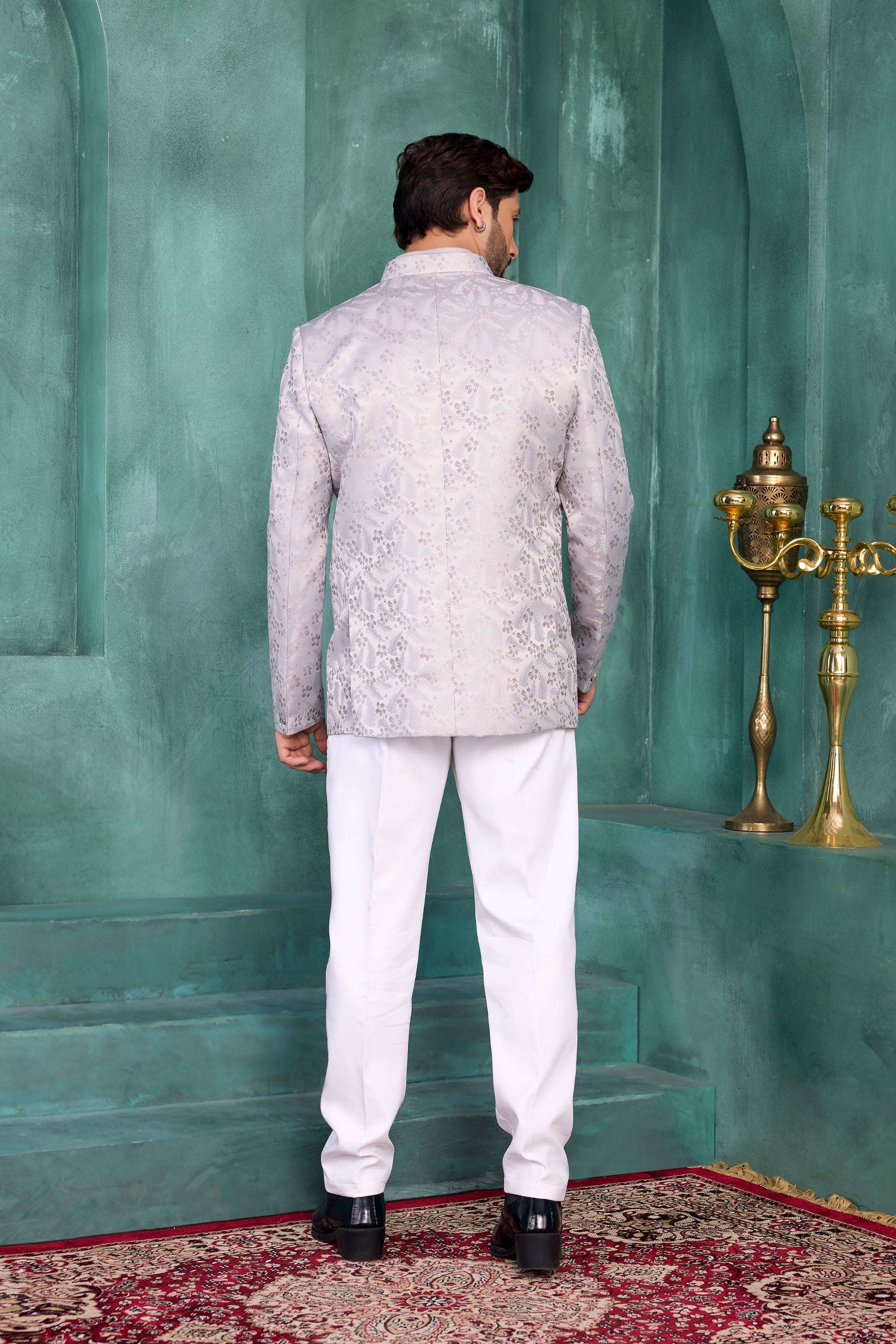 Impressive Grey Floral Jodhpuri Jacket Without Pant for Wedding