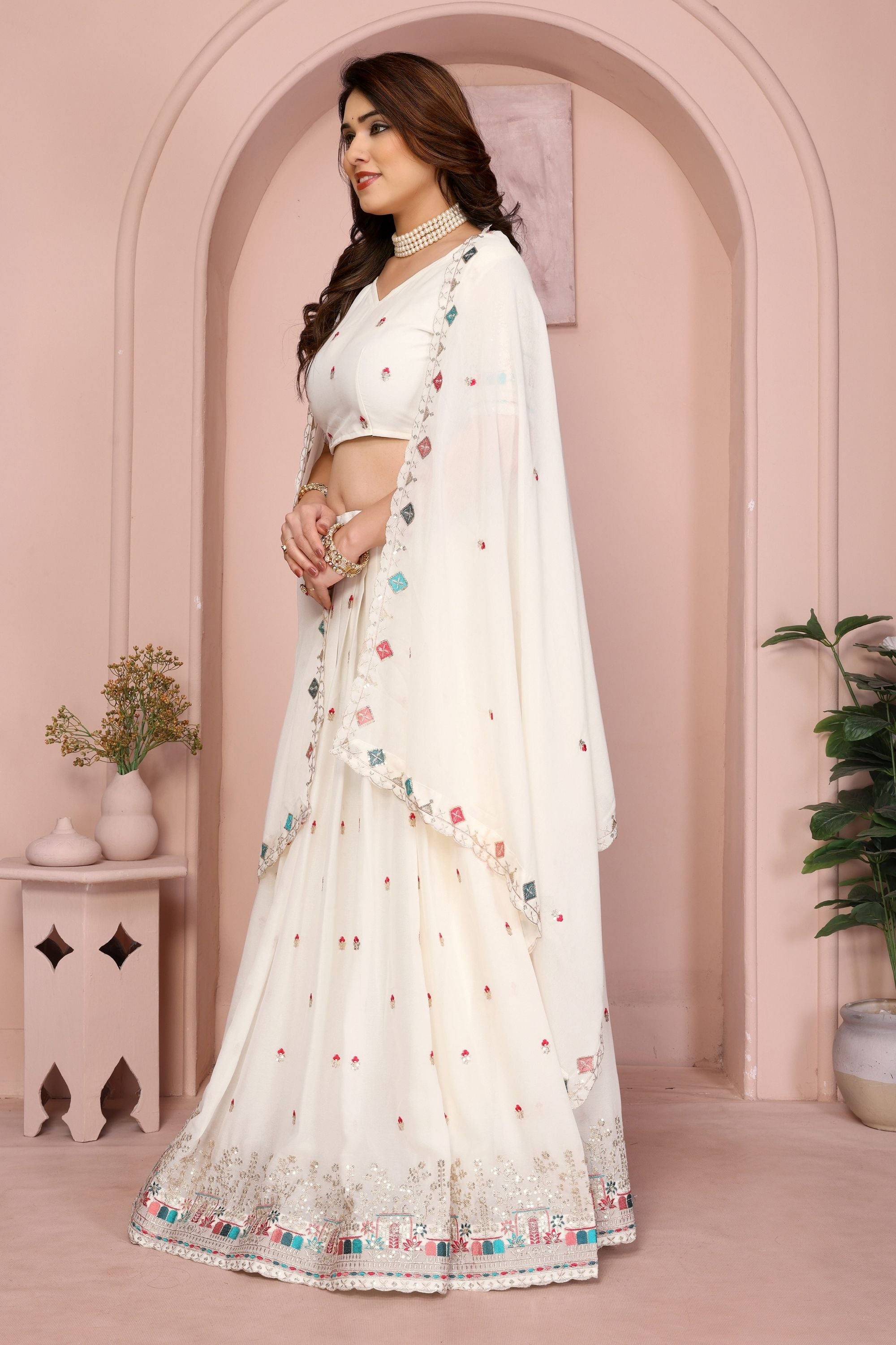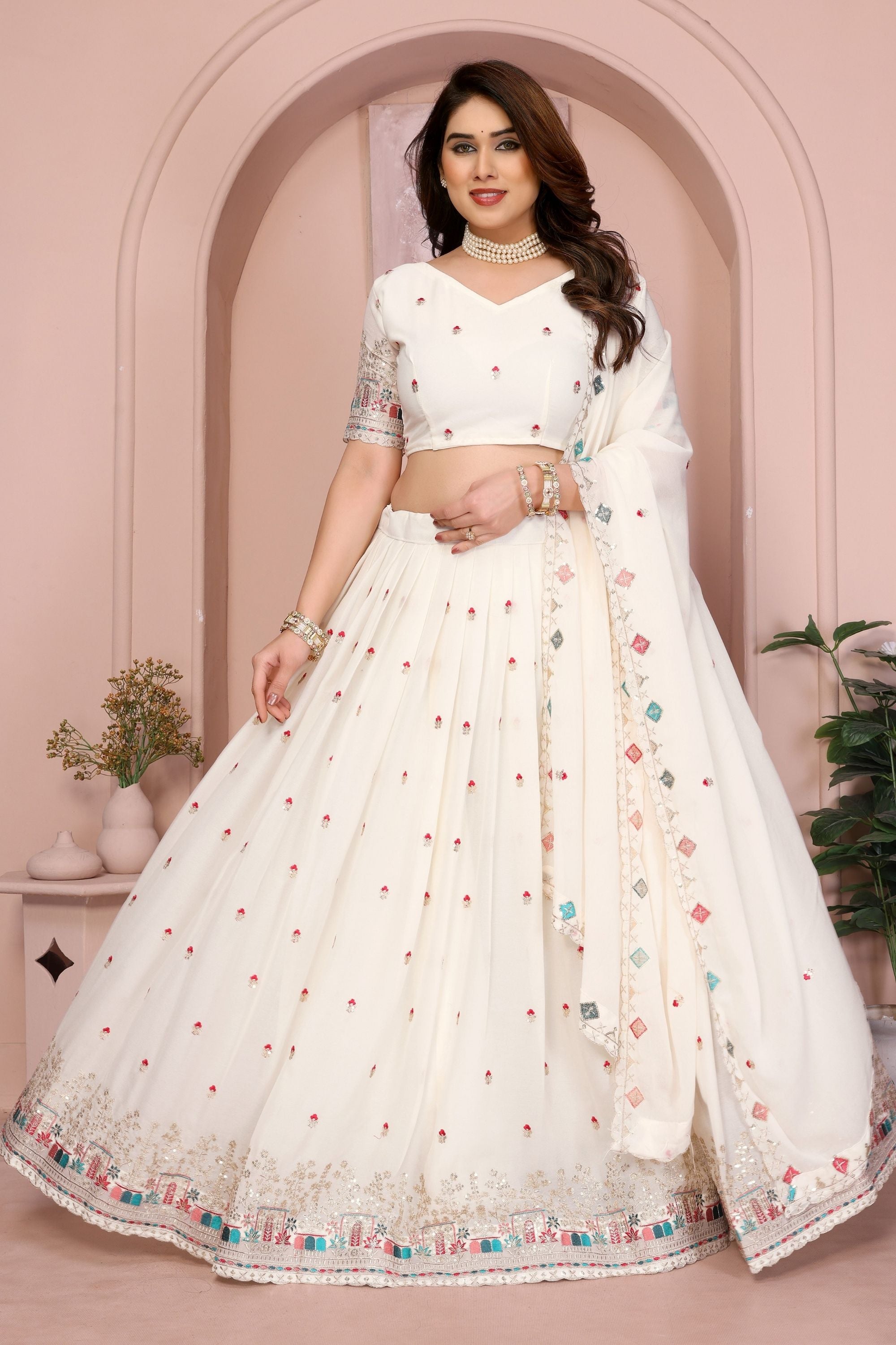 Ivory White Embroidered Lehenga Choli with Dupatta Silk Blend Wedding Festive Wear