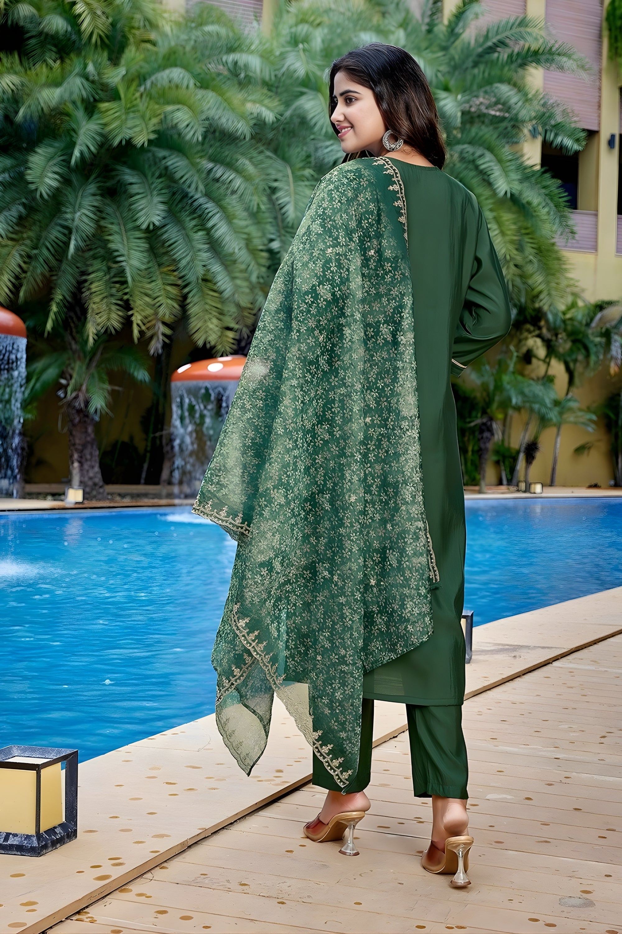 Latest Dark Green Embroidered Straight Suit with Printed Dupatta for Festive and Party Wear