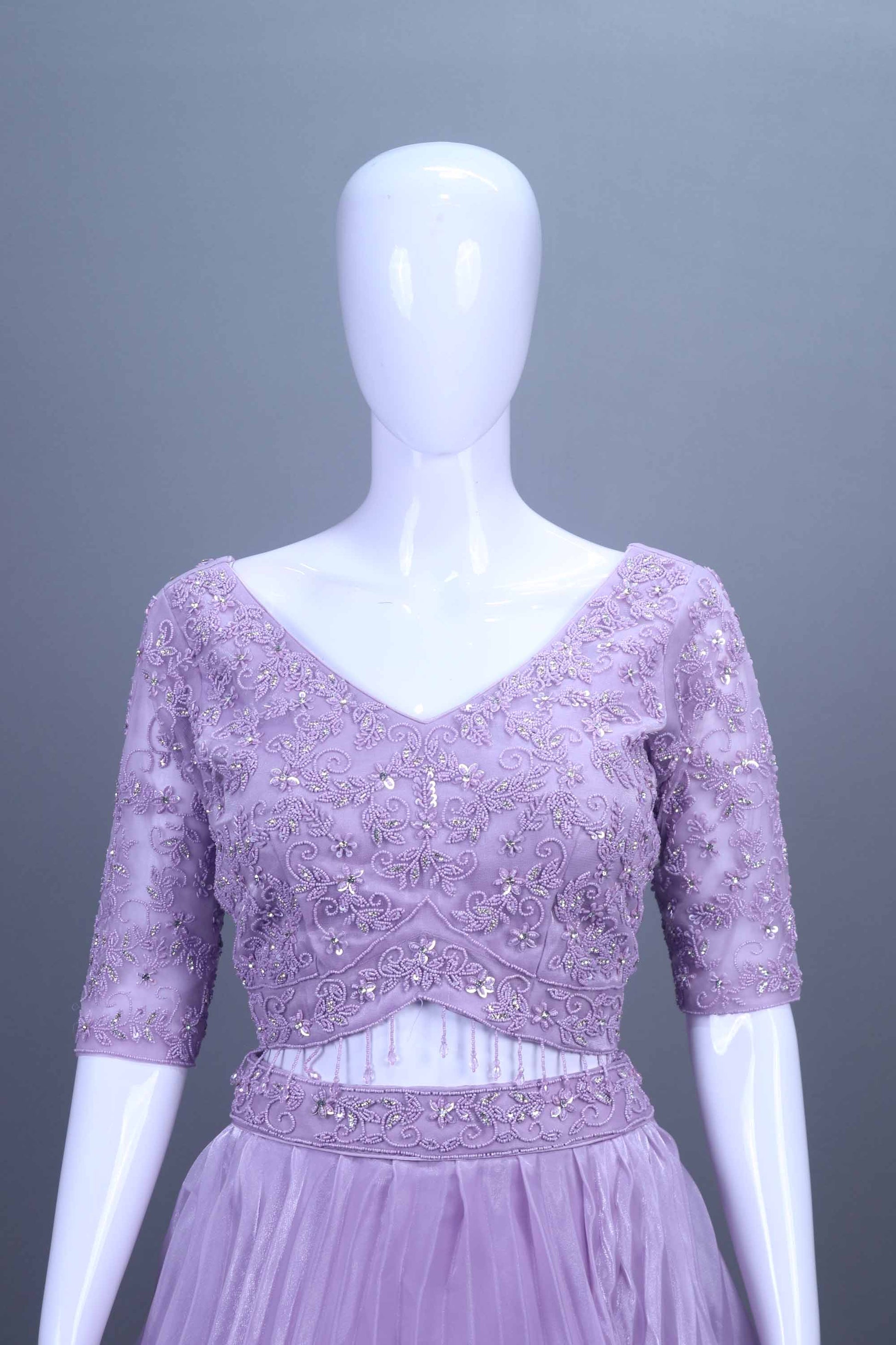 Step into elegance with this enchanting Lavender Embroidered Lehenga Choli with Net Dupatta . Designed with intricate embroidery and delicate sequin work, this stunning outfit perfectly blends traditional charm with modern sophistication. The soft organza fabric gives the lehenga a graceful flow, while the matching blouse with half sleeves and a detailed neckline adds a touch of glamour. The pleated chevron-patterned skirt and lightweight net dupatta complete the look, making this ensemble ideal for festive occasions, weddings, receptions, and engagement ceremonies. This lavender designer lehenga set ensures comfort, beauty, and luxury, helping you shine at every celebration.