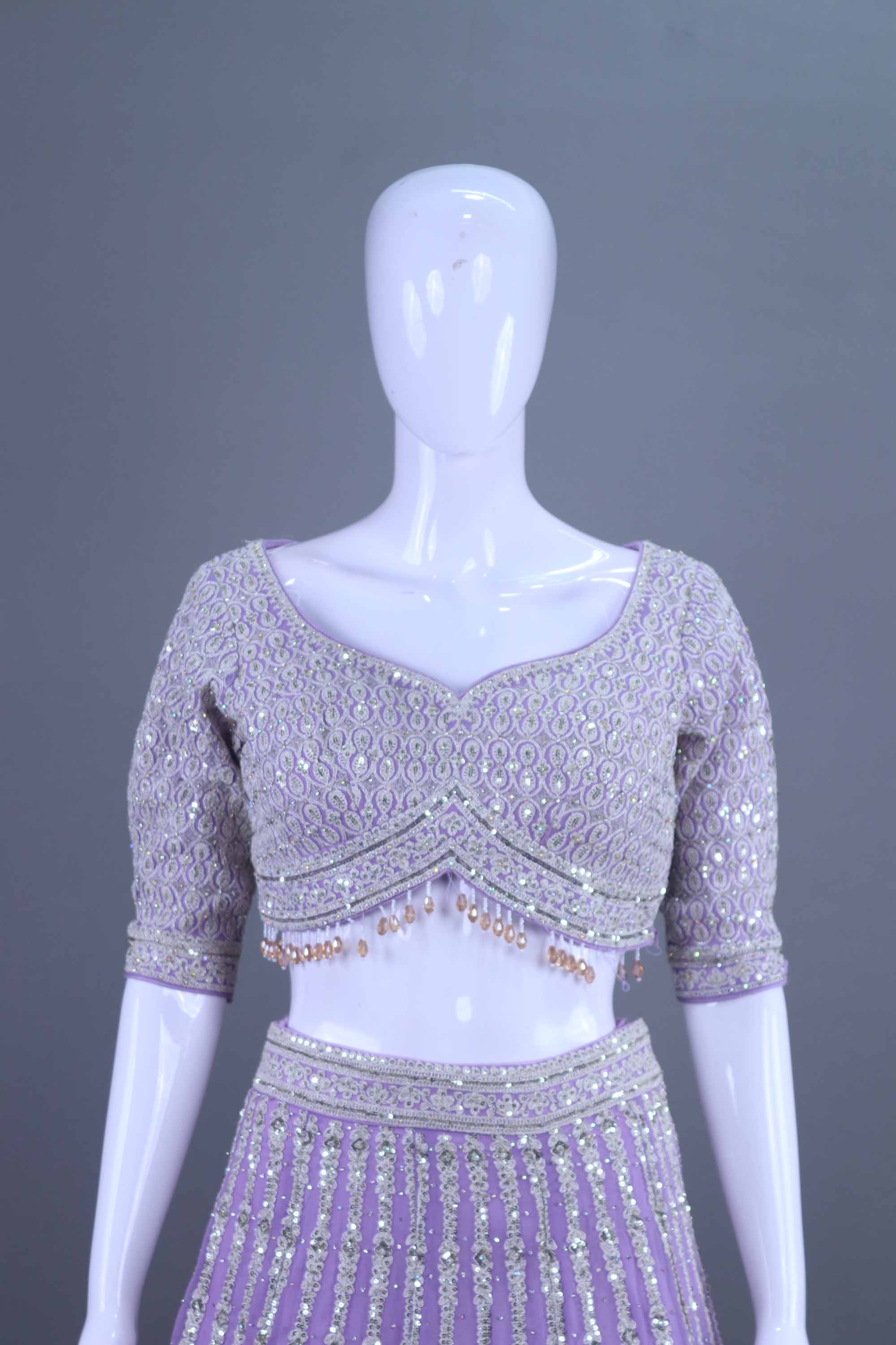 Step into timeless elegance with this Lavender Lehenga Choli Matching Net Dupatta Designer Wedding Wear designed to make every occasion unforgettable. Crafted from premium georgette fabric, this lehenga features intricate zari, mirror, and thread embroidery that exudes sophistication and charm. The matching lavender net dupatta is adorned with delicate floral motifs and embroidered borders, completing the regal ensemble. Perfect for weddings, receptions, festive celebrations, and sangeet functions, this designer lehenga offers a flattering silhouette with a beautifully tailored choli and a voluminous flared skirt. Its soft lavender hue adds a modern yet graceful touch, making it a must-have for fashion-forward bridesmaids and festive wear lovers.