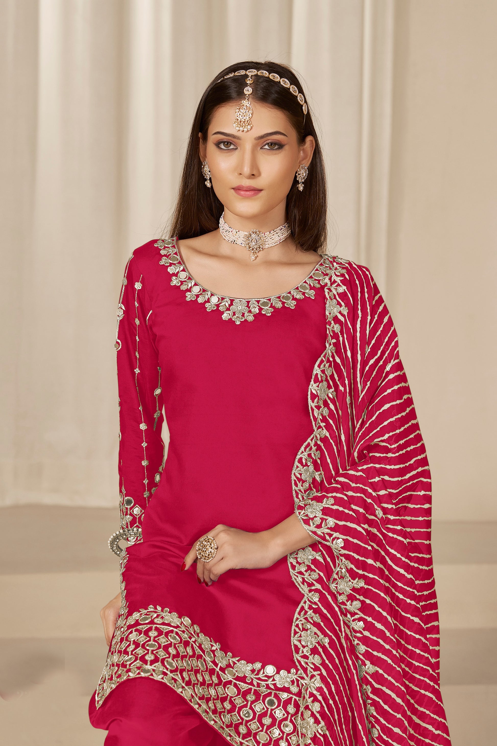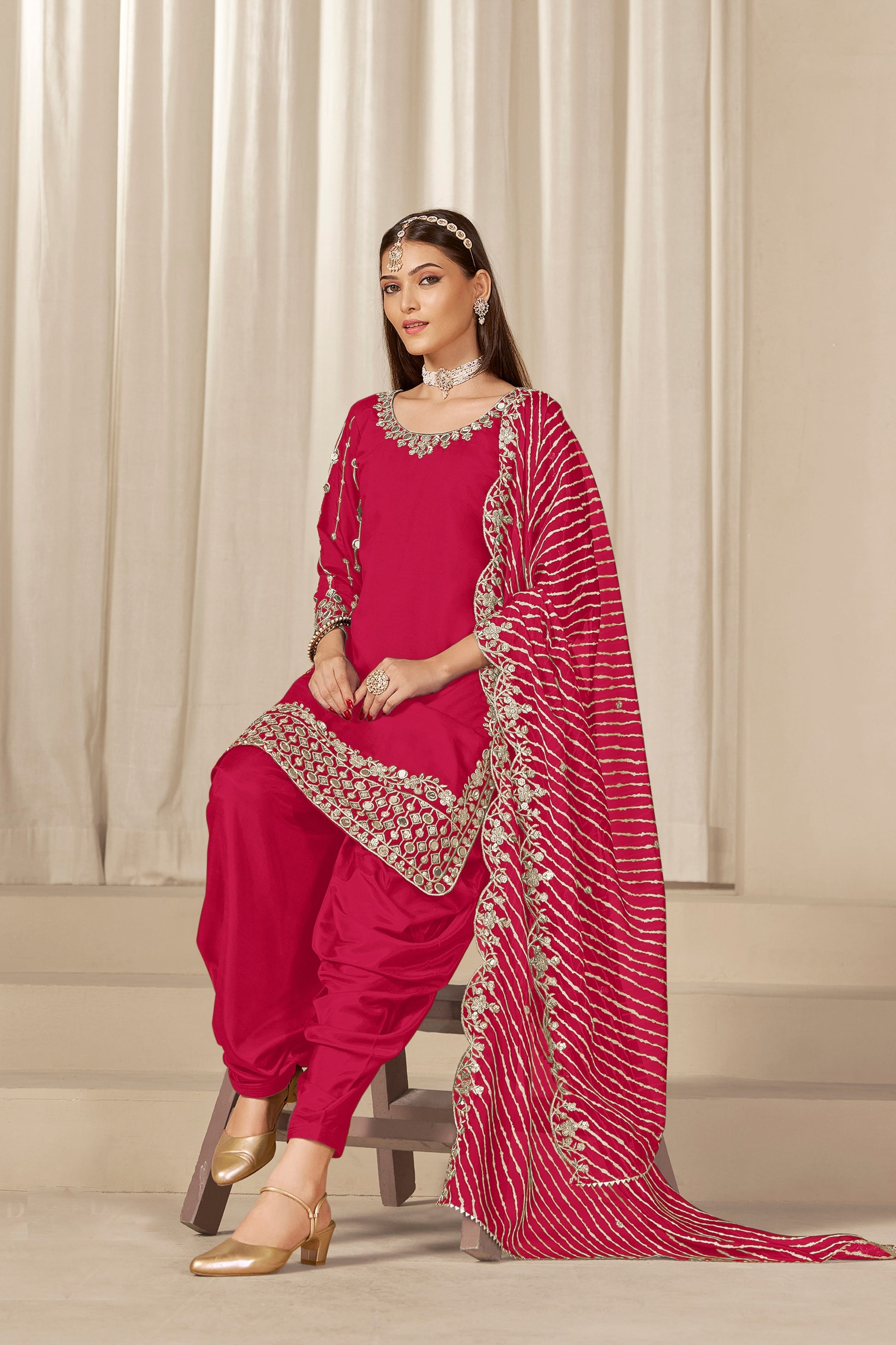 Lovely Rani Pink Embroidered Punjabi Patiala Suit with Dupatta