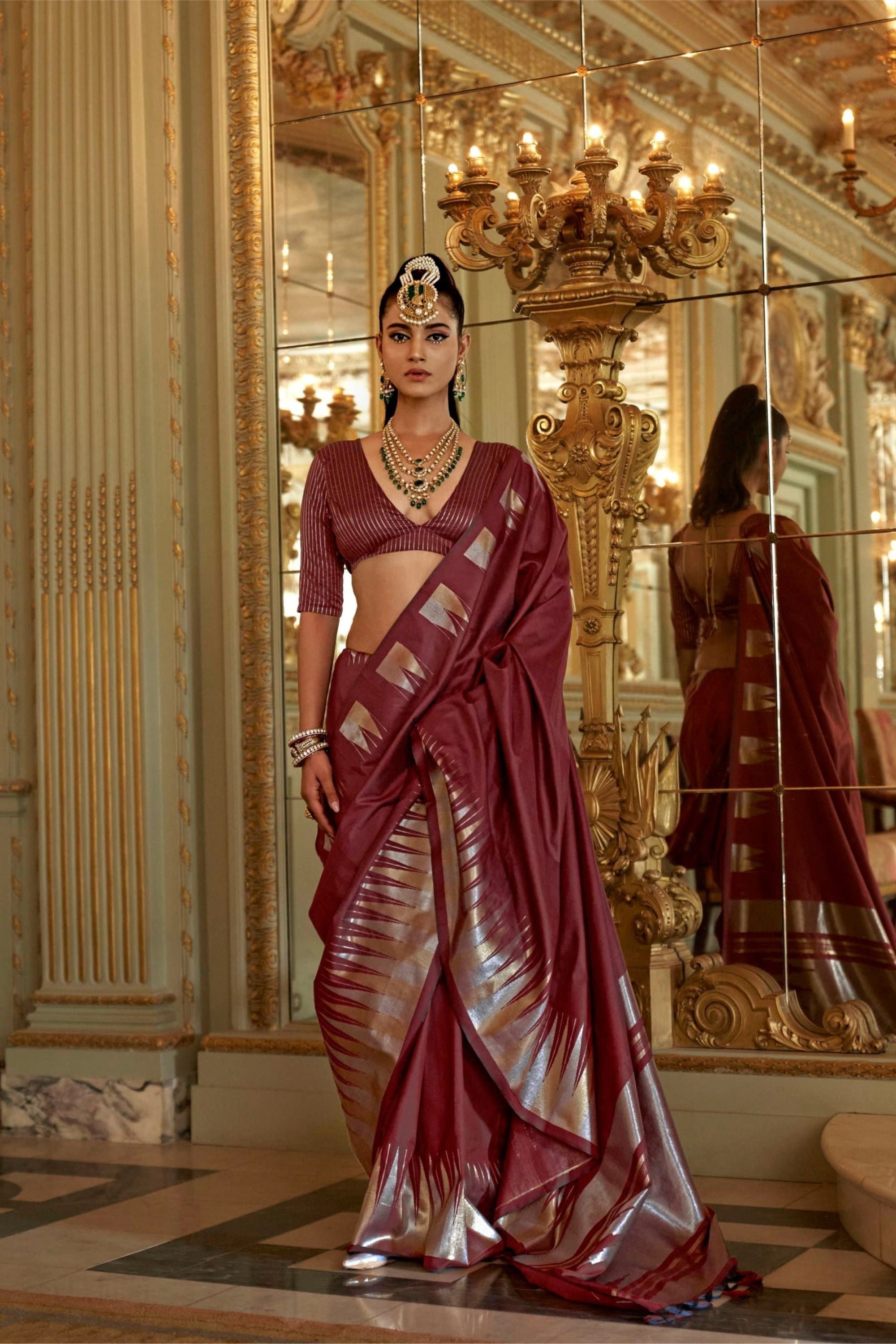 Maroon Designer Silk Saree with Metallic Zari Border Pallu