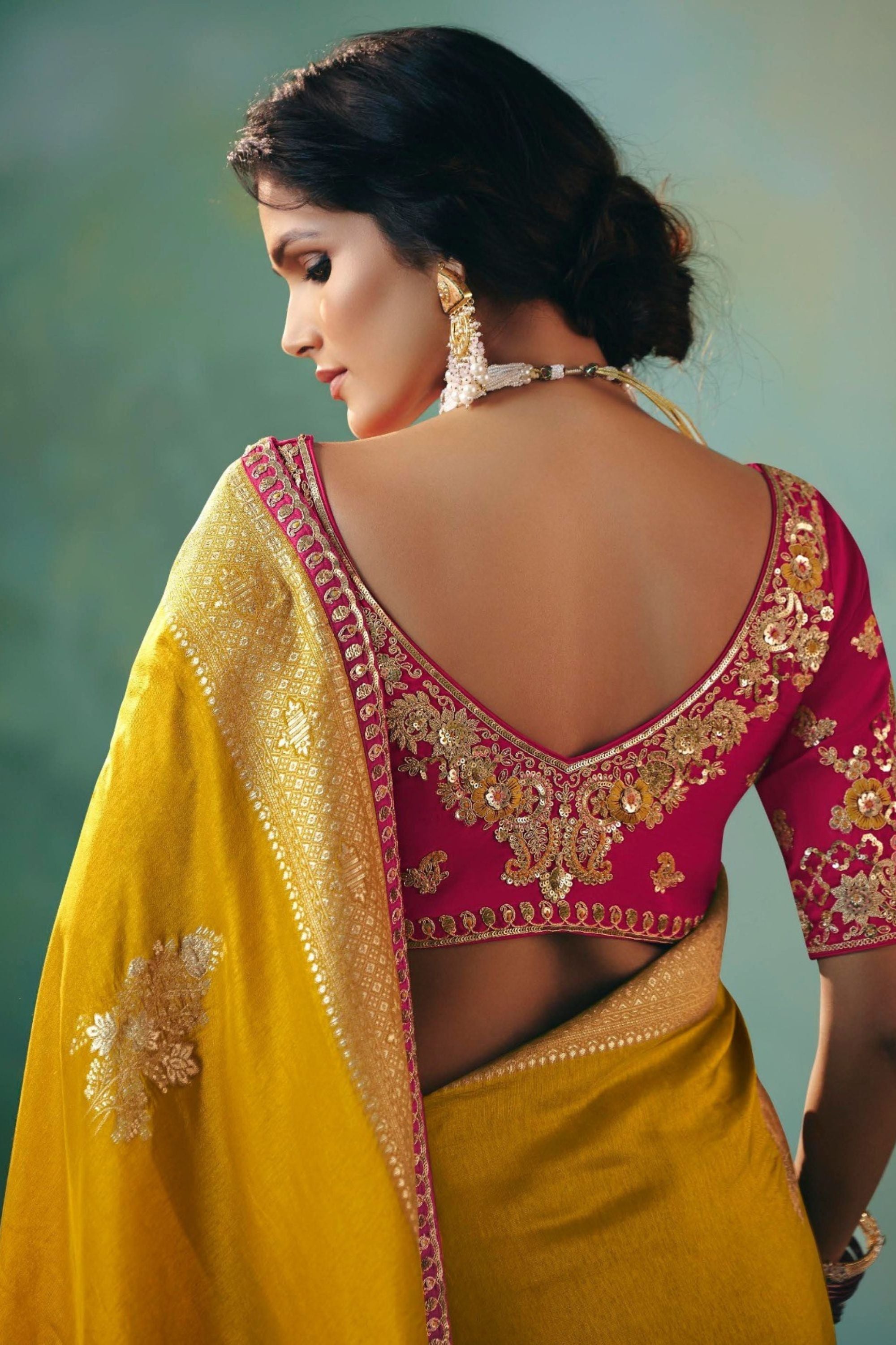 Mustard Yellow Embroidered Silk Saree With Designer Blouse
