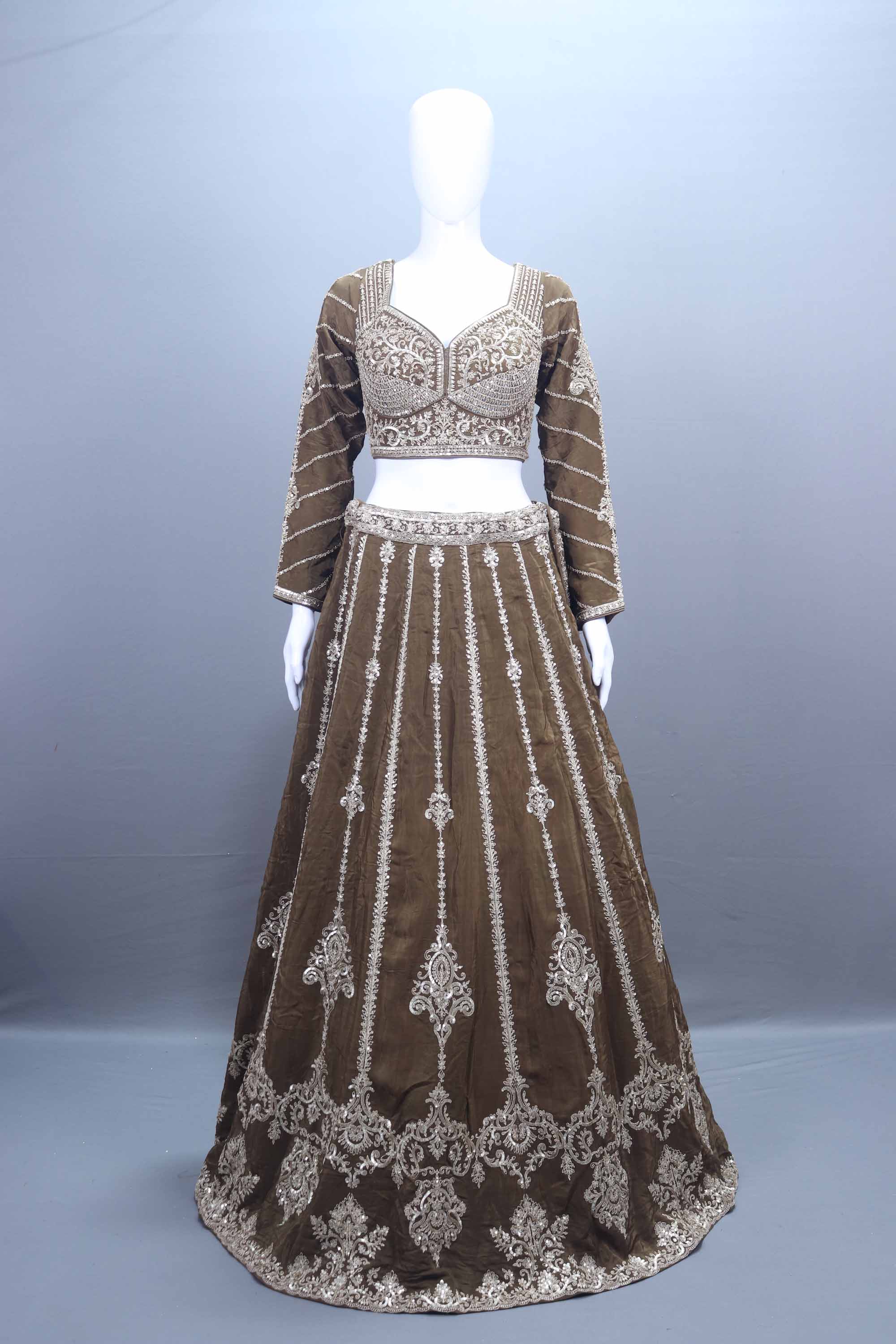 Make a grand style statement with this luxurious Olive Green Embroidered Velvet Lehenga Choli Dupatta ,a perfect blend of regal charm and modern elegance. Crafted from premium velvet fabric, this lehenga features intricate zari and sequin embroidery that adds a royal touch to your festive and bridal wardrobe. The matching blouse is richly embellished with detailed threadwork and mirror-inspired motifs, complemented by a beautifully embroidered dupatta with delicate lace edging. Ideal for weddings, receptions, engagement functions, and festive occasions, this olive green velvet lehenga choli is designed to make you shine with sophistication. Pair it with statement jewelry and elegant heels for a complete ethnic look that exudes grace and grandeur.