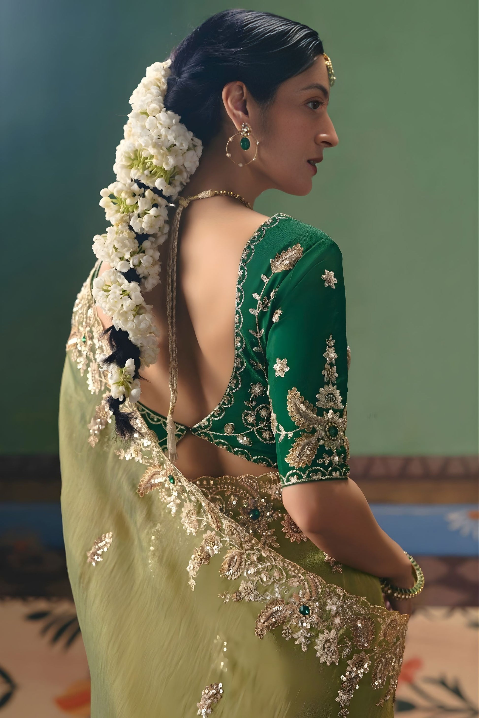Olive Green Organza Saree Heavy Zari Embroidery Border Designer Blouse
