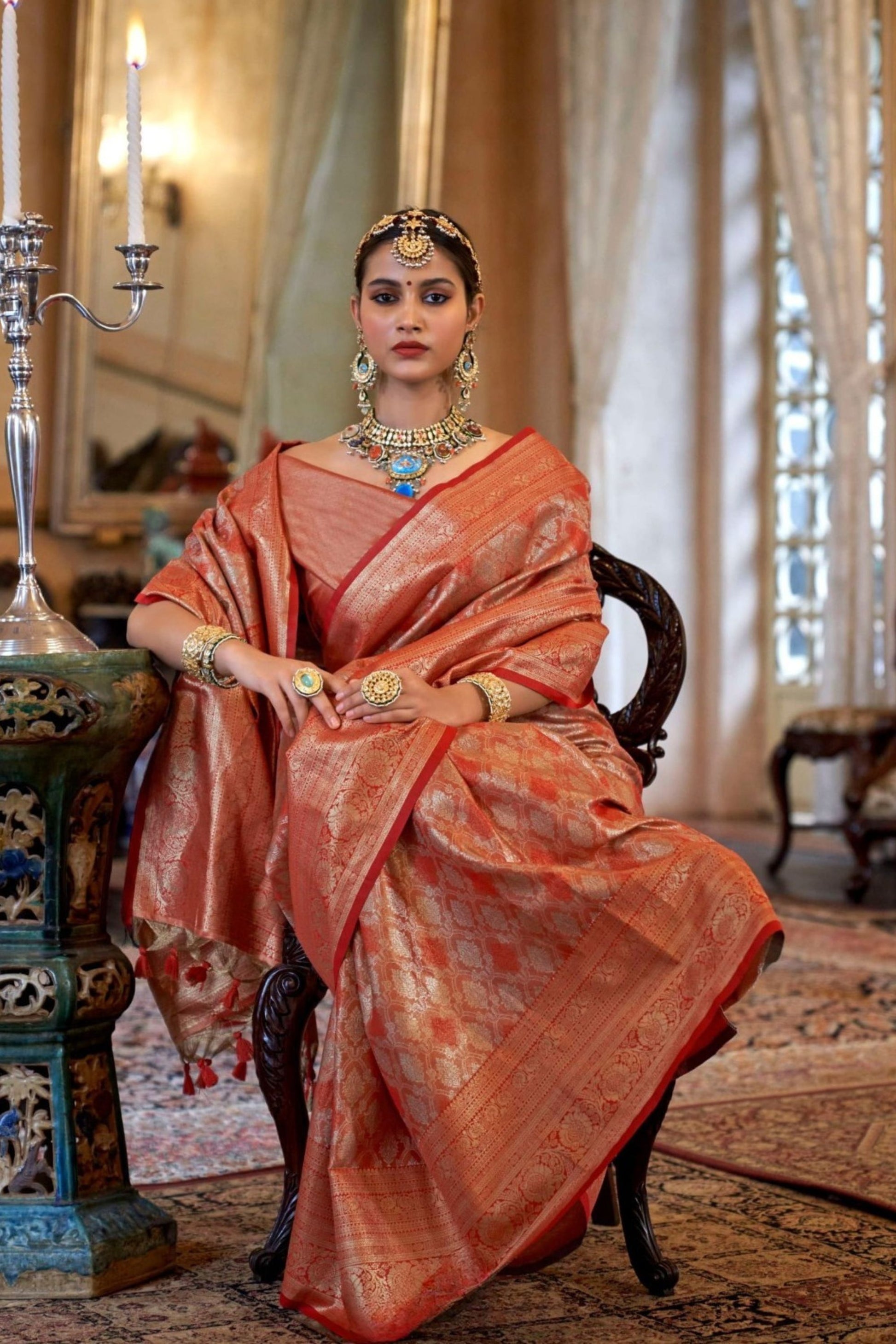 Orange Banarasi Silk Saree with Golden Zari Festive Wear Saree