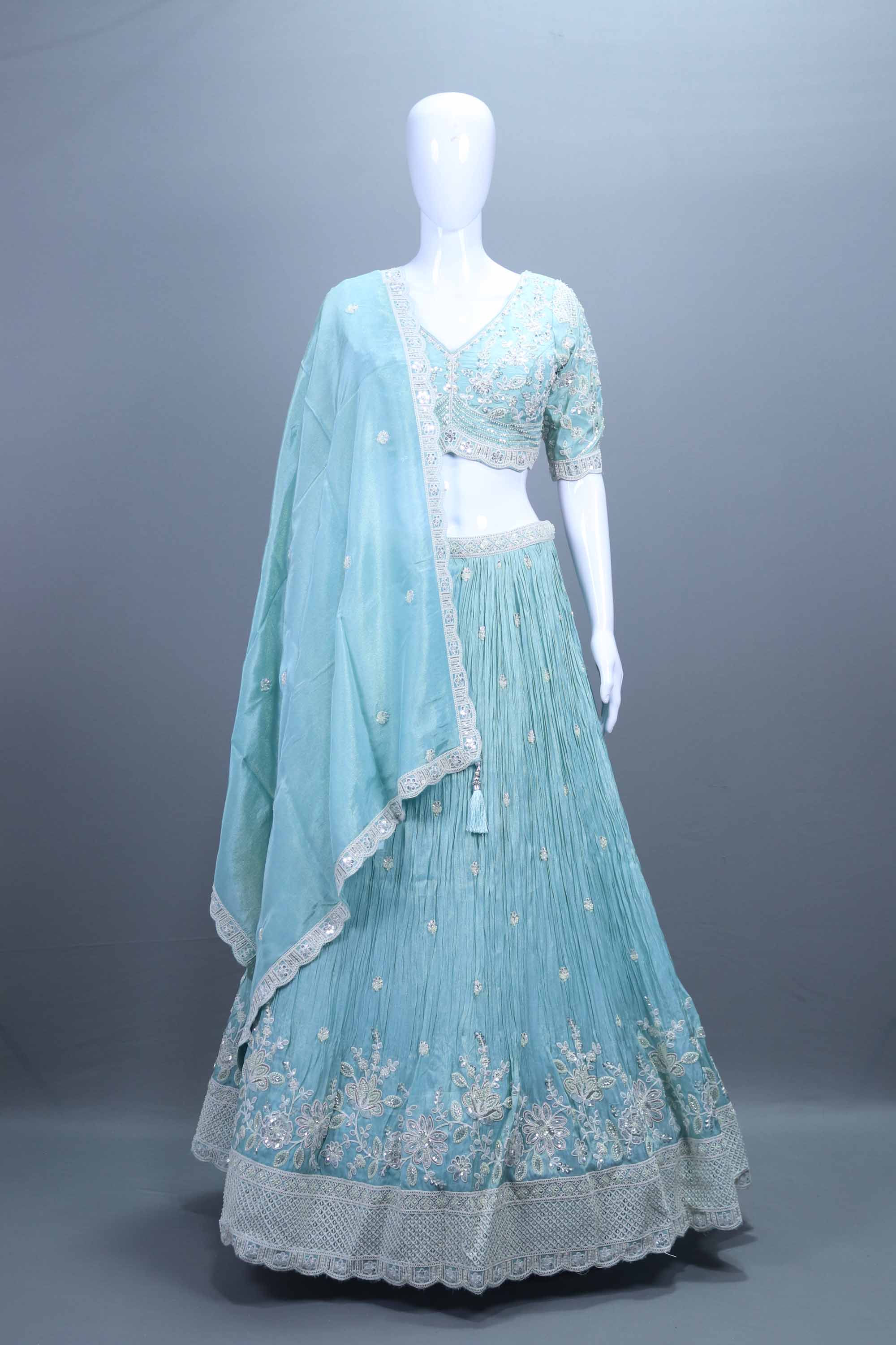 Pastel Aqua Heavy Embroidered Silk Lehenga Choli with Dupatta