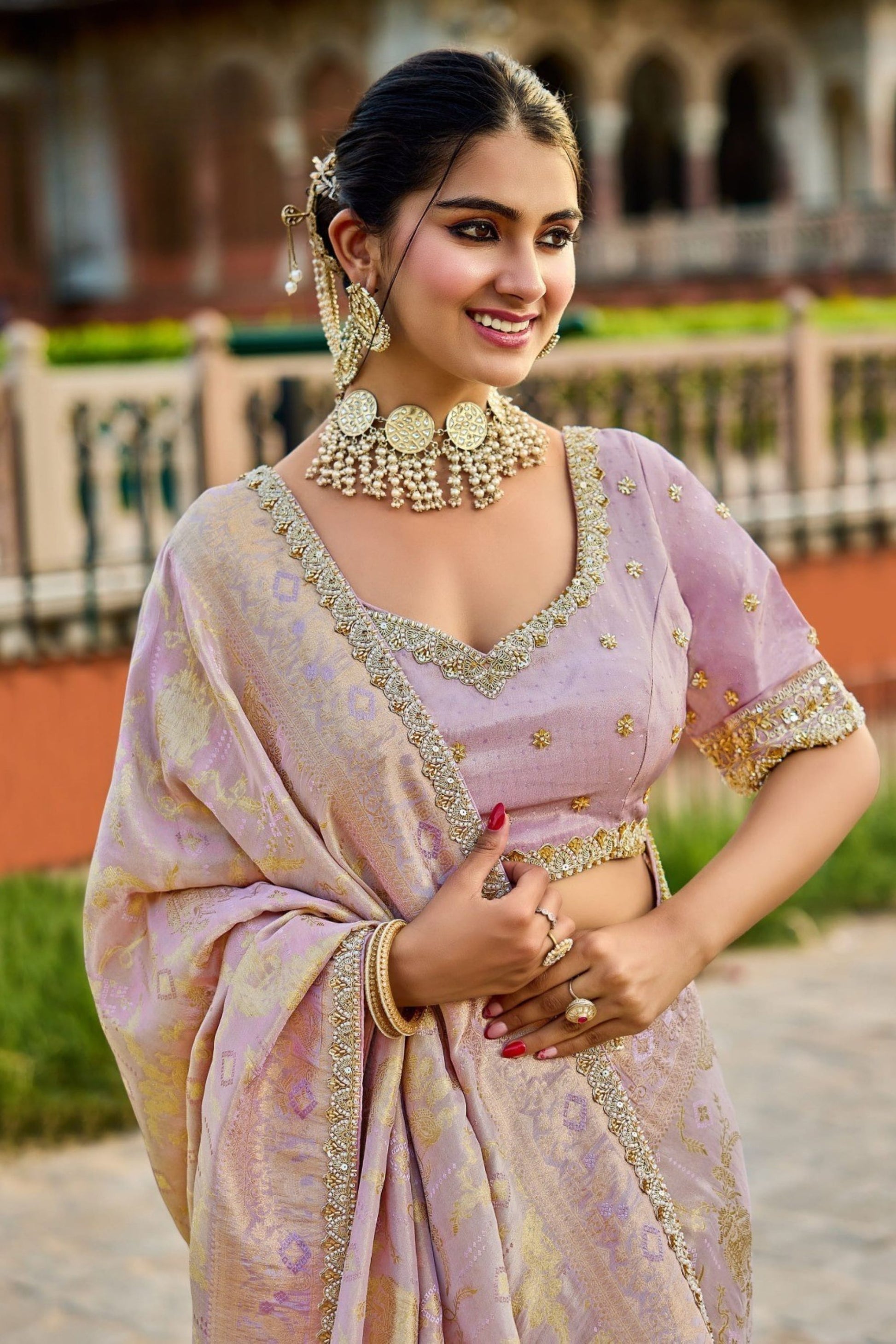 Pastel Lavender Banarasi Silk Saree Embroidered Blouse