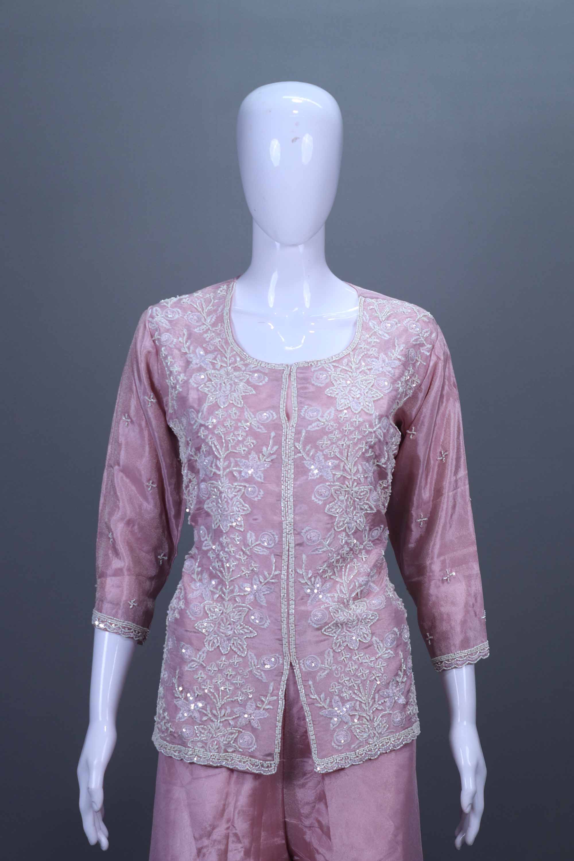 Elevate your festive wardrobe with this elegant Pink Embroidered Silk Kurta Palazzo Set Party Wear Ethnic Suit designed to give you a graceful and royal ethnic look. Crafted from premium silk fabric, this outfit offers a luxurious sheen, lightweight comfort, and effortless style for any special occasion. The kurta features intricate embroidery work on the front and sleeves, adding a sophisticated and feminine charm. The matching wide-leg palazzo pants ensure comfort and ease of movement while enhancing the overall silhouette. With a modern yet traditional design, this suit set is perfect for weddings, parties, festivals, and family gatherings.