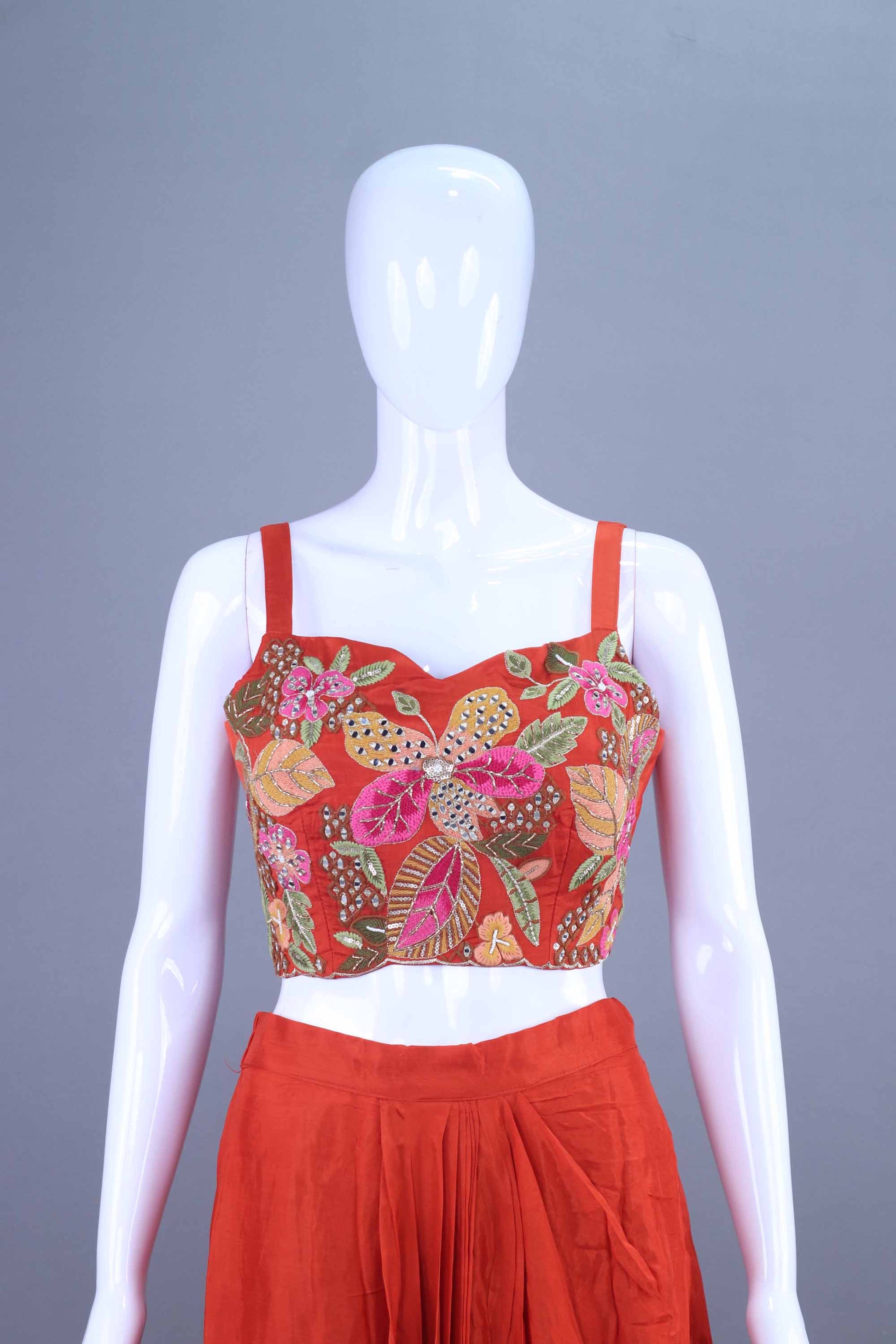 Pink Orange Crop Top Dhoti Pants Indo-Western Party Wear Set