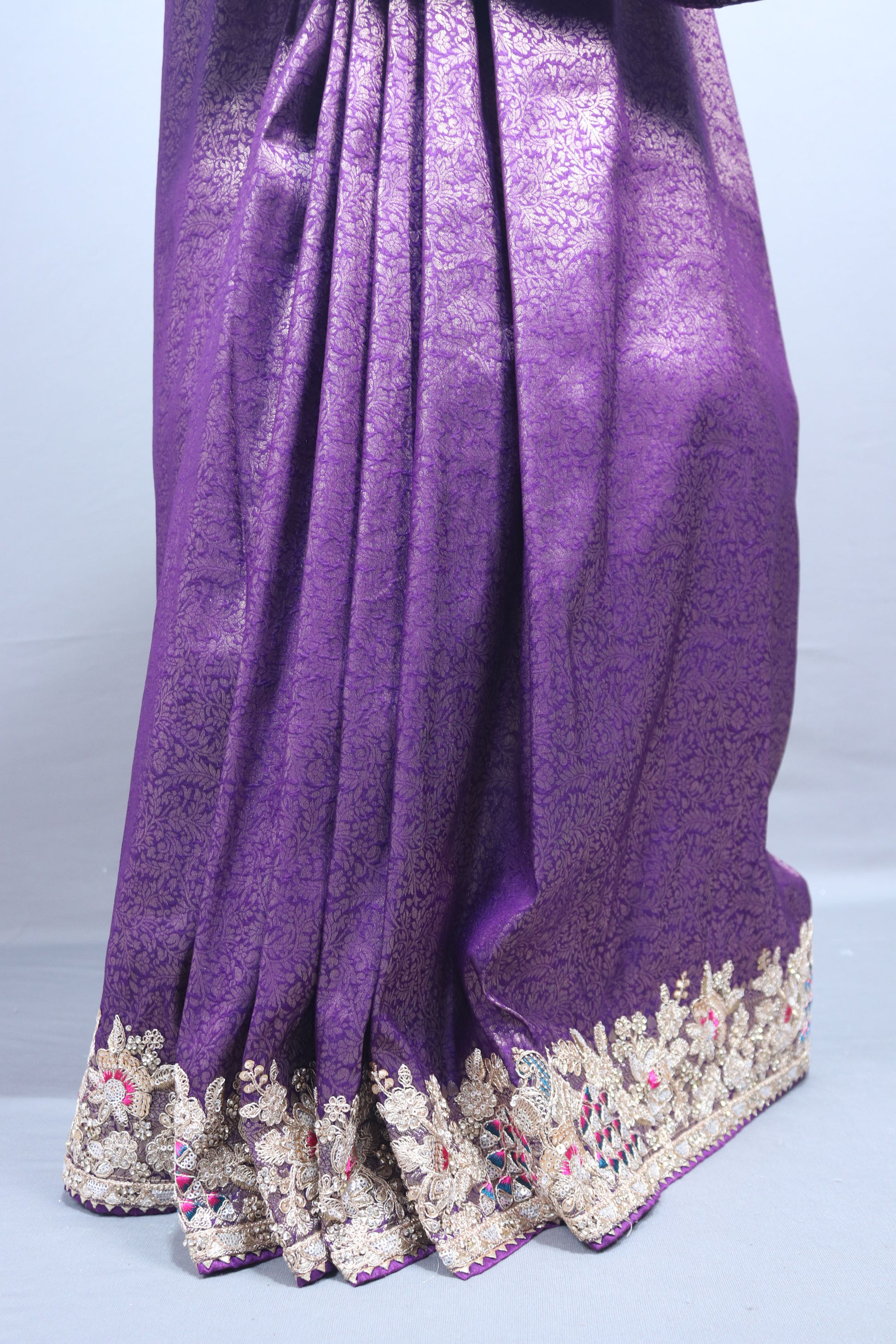Purple Banarasi Silk Saree Heavy Silver Zari Embroidered Border