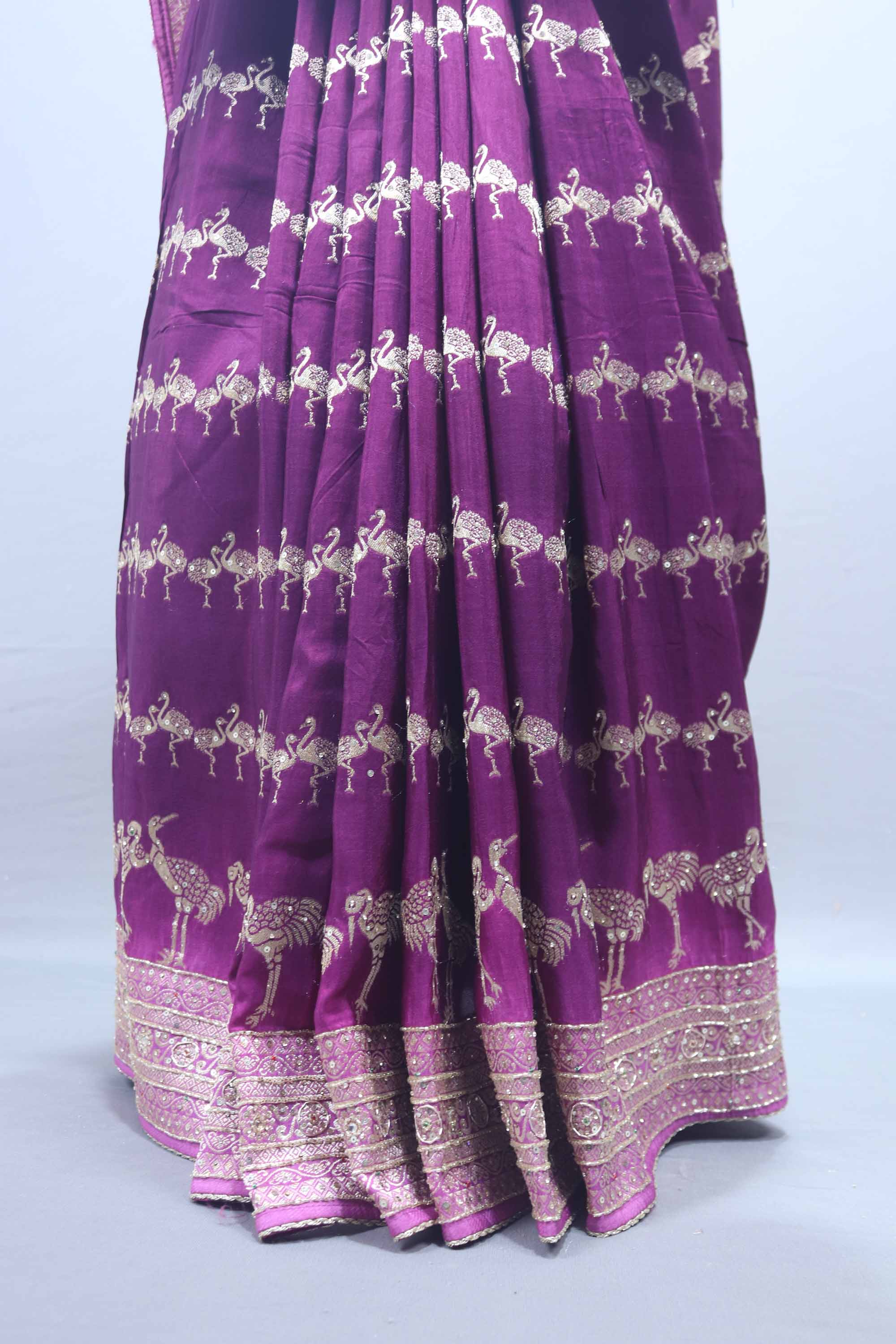 Purple Banarasi Silk Saree with Dancing Doll Motifs Heavy Zari Border