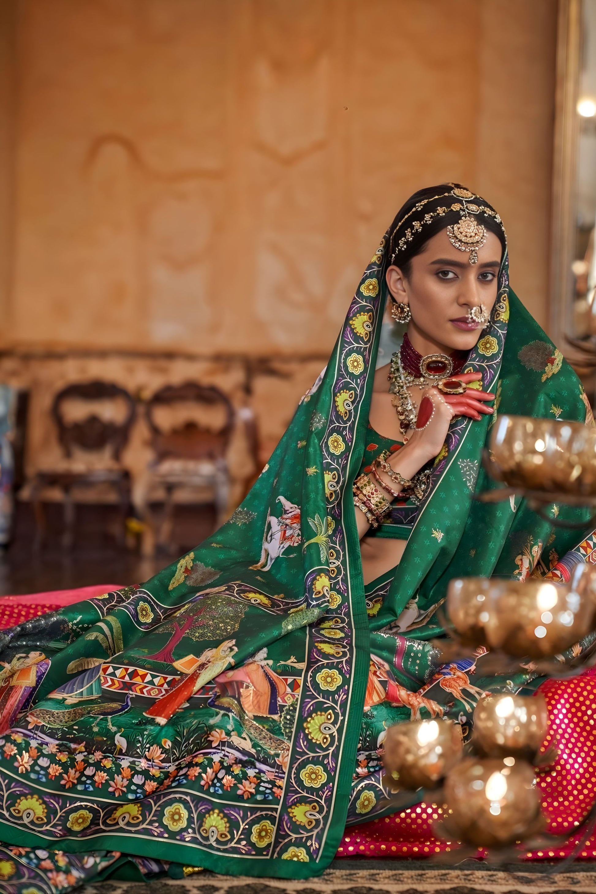 Royal Green Designer Silk Saree Rajasthani Print Heavy Saree
