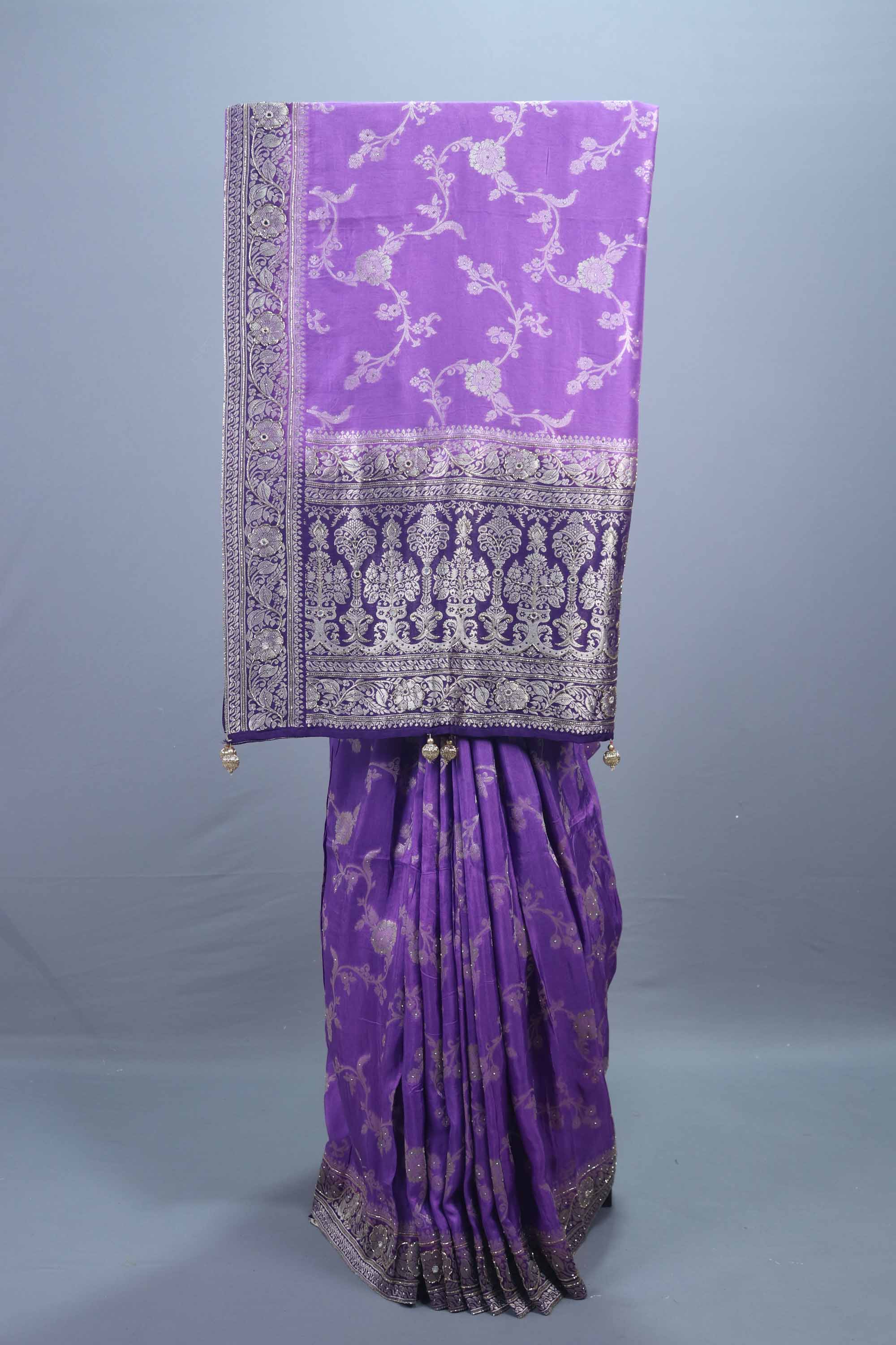 Royal Purple Embroidered Silk Saree with Heavy Silver Zari Border Pallu