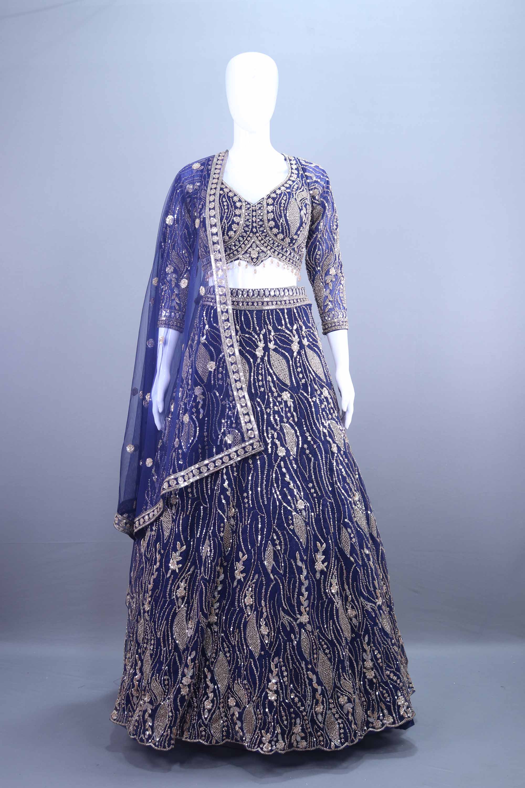 Navy Blue Net Lehenga Choli and Zari Work Designer Lehenga