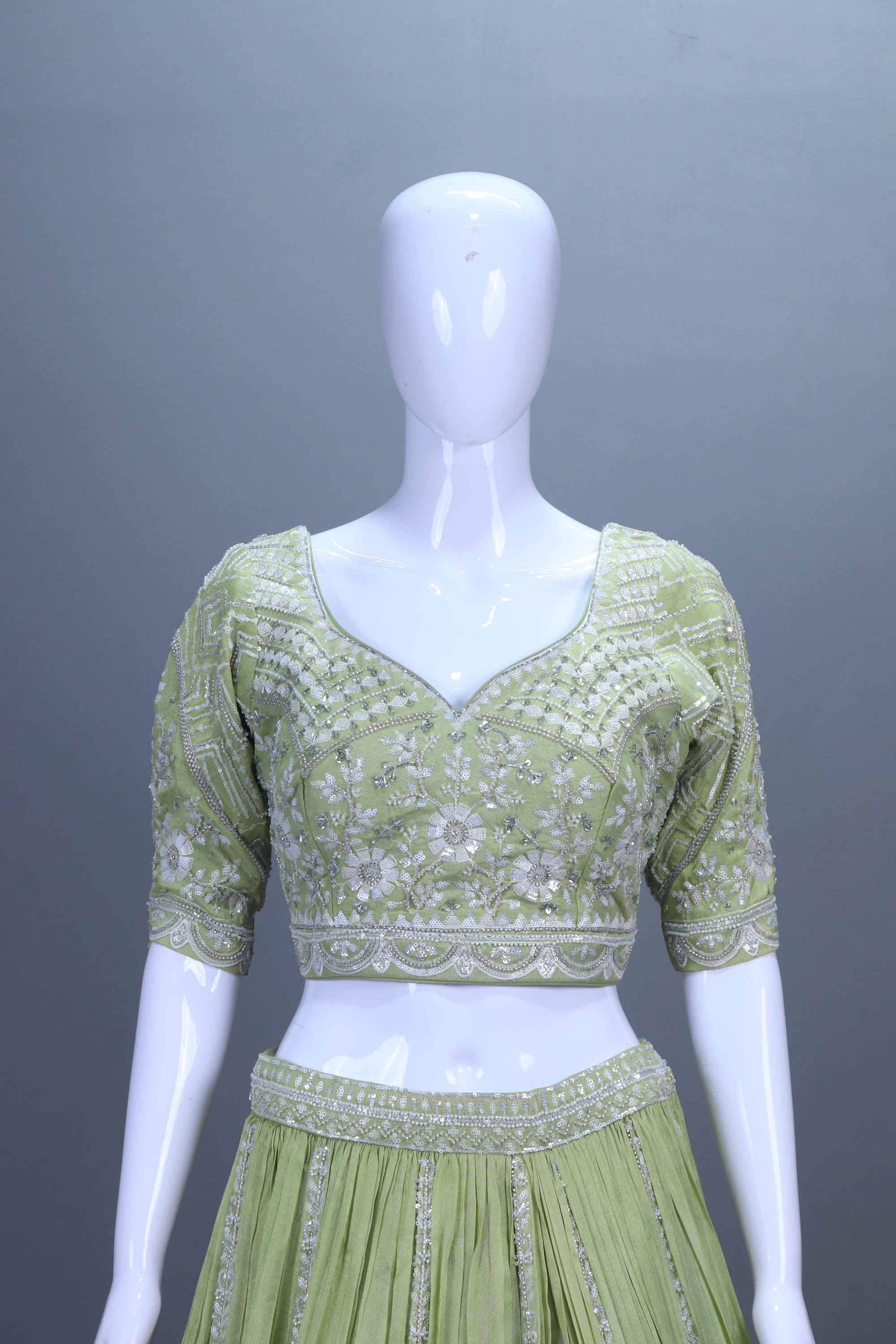 Sage Green Silk Embroidered Lehenga Choli Designer Dupatta
