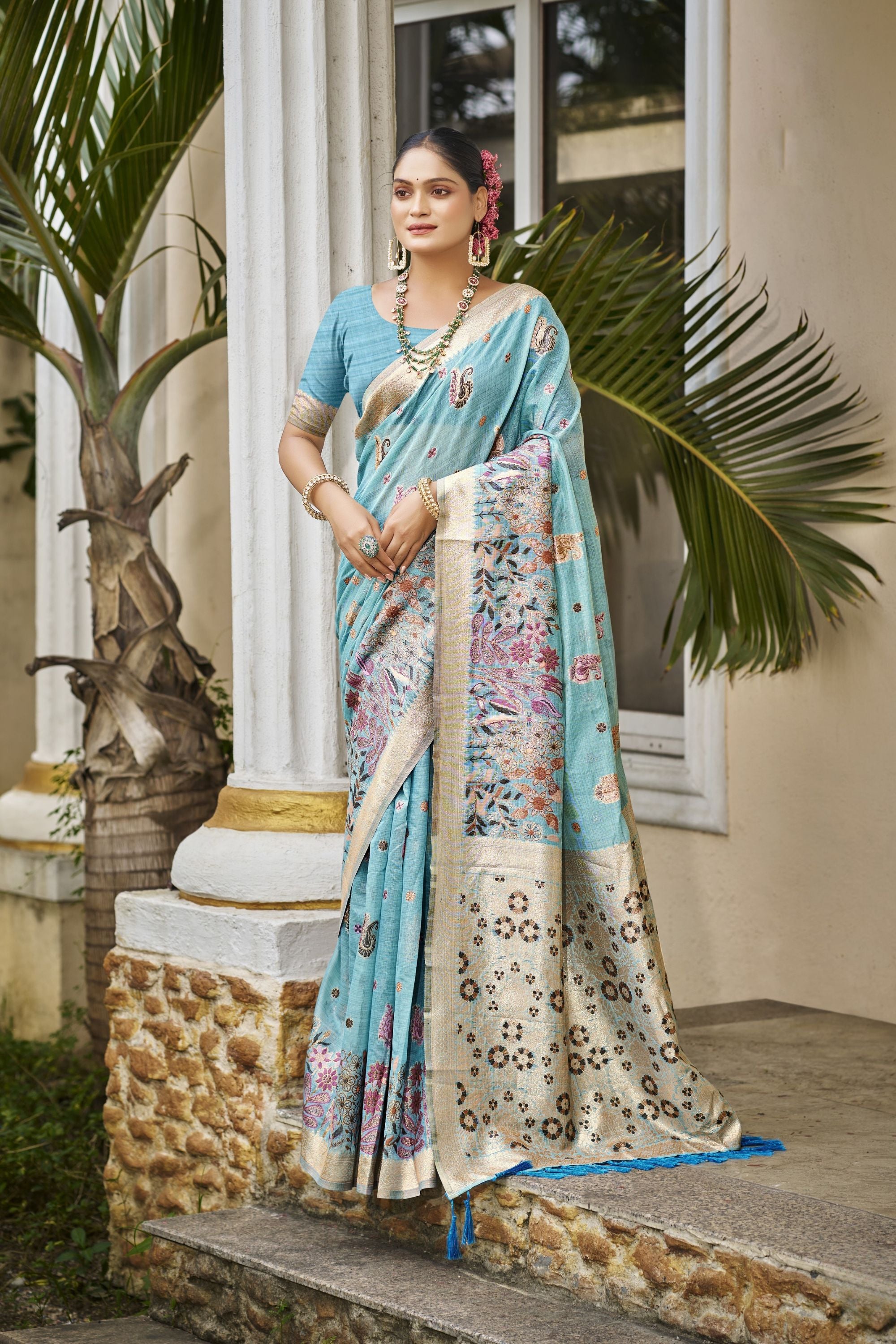 Sky Blue Banarasi Silk Saree with Zari Pallu Festive Wear