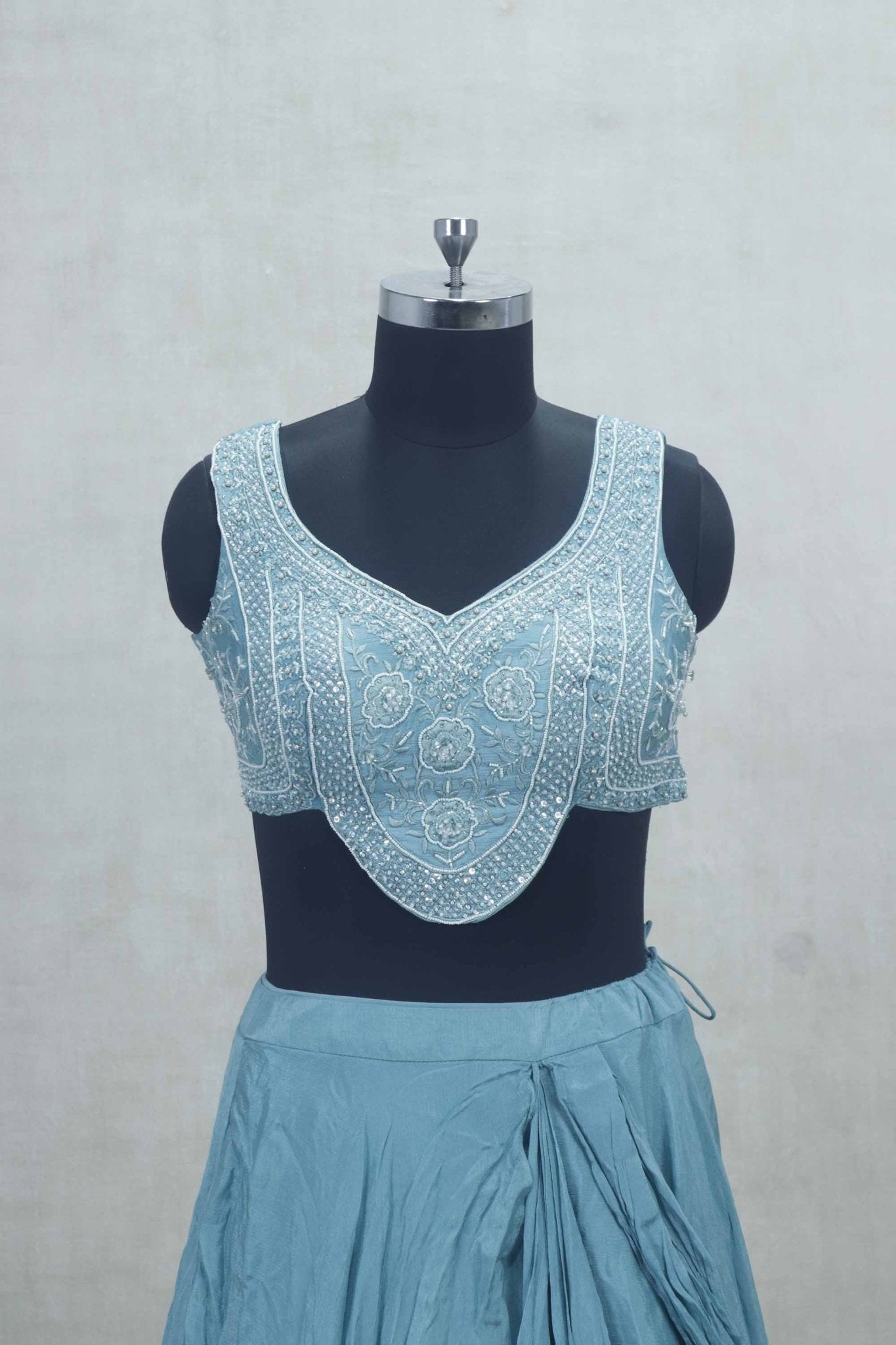 Sky Blue Ruffled Lehenga Choli with Hand Embroidered Yoke