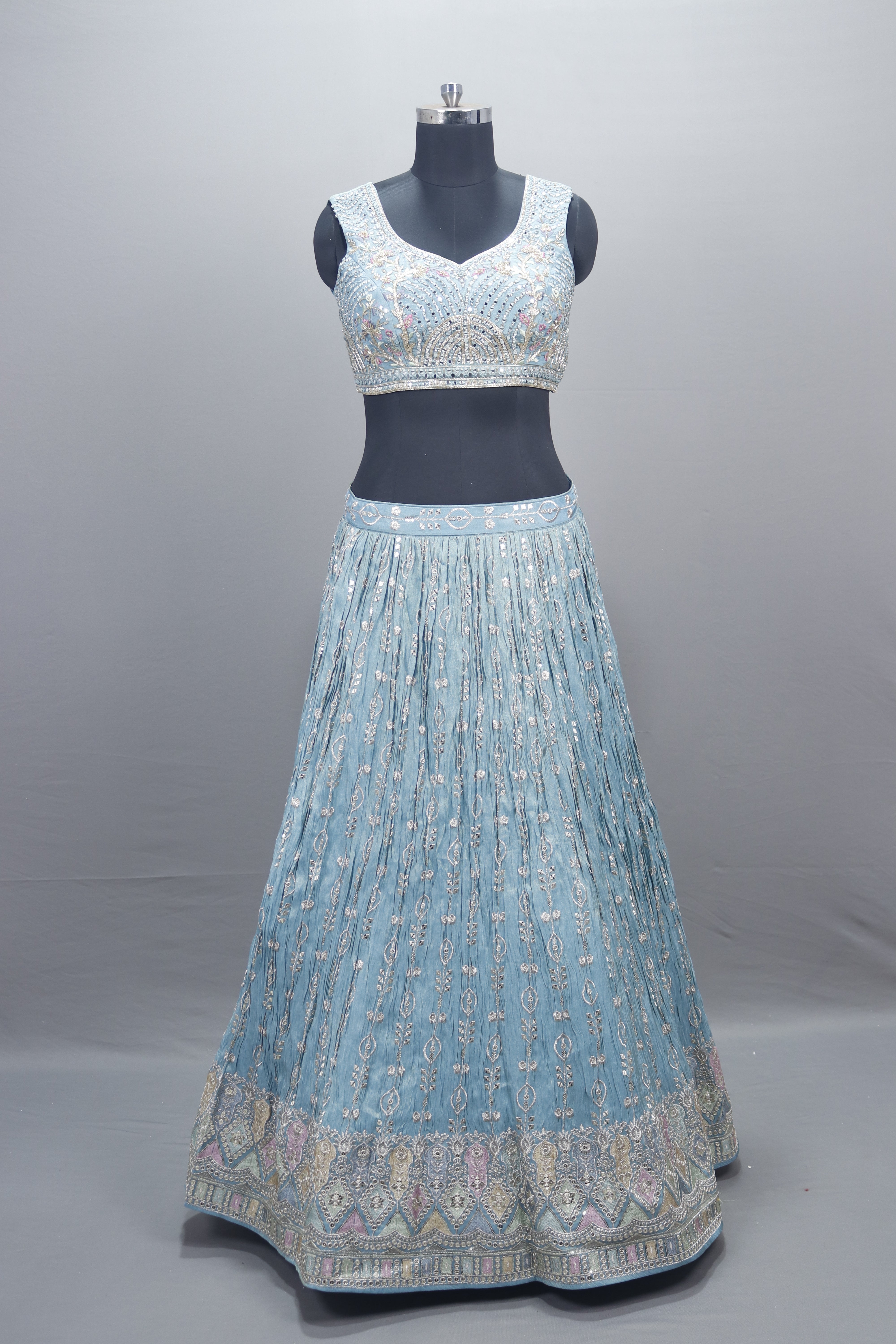 Sky Blue Silk Lehenga Choli with Dupatta Party Wear Designer Lehenga