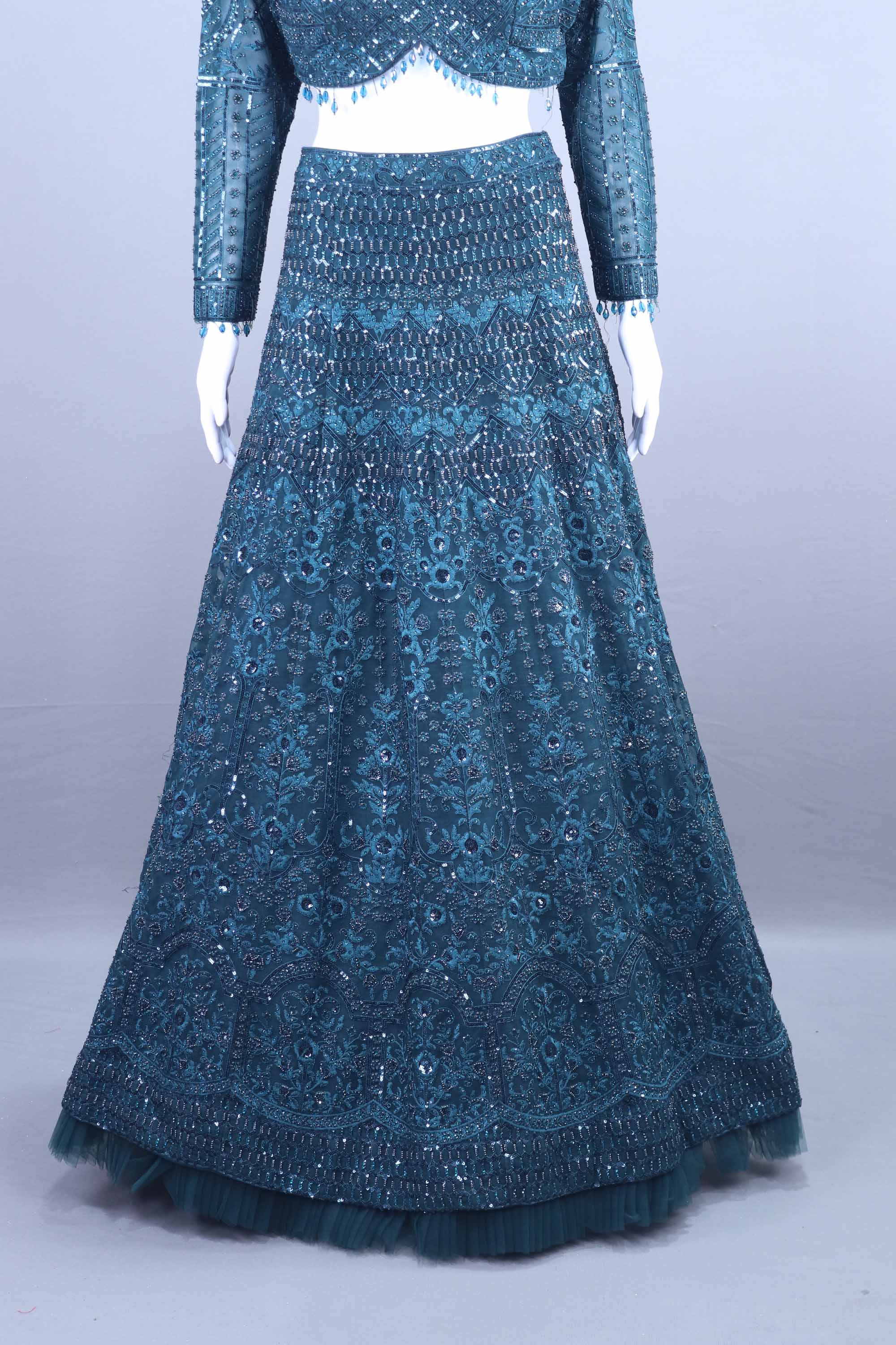 Make a royal statement with this Teal Blue Heavy Lehenga Designer Choli with Dupatta a masterpiece that blends timeless elegance with modern glamour. Crafted from premium quality net fabric, this designer lehenga features intricate thread embroidery and sparkling sequin work throughout, giving it a luxurious and graceful appeal. The fully embellished choli with long sleeves complements the flared embroidered lehenga, creating a breathtaking silhouette perfect for weddings, receptions, and festive occasions. The matching net dupatta with delicate sequin border adds the perfect finishing touch to this stunning ethnic ensemble.