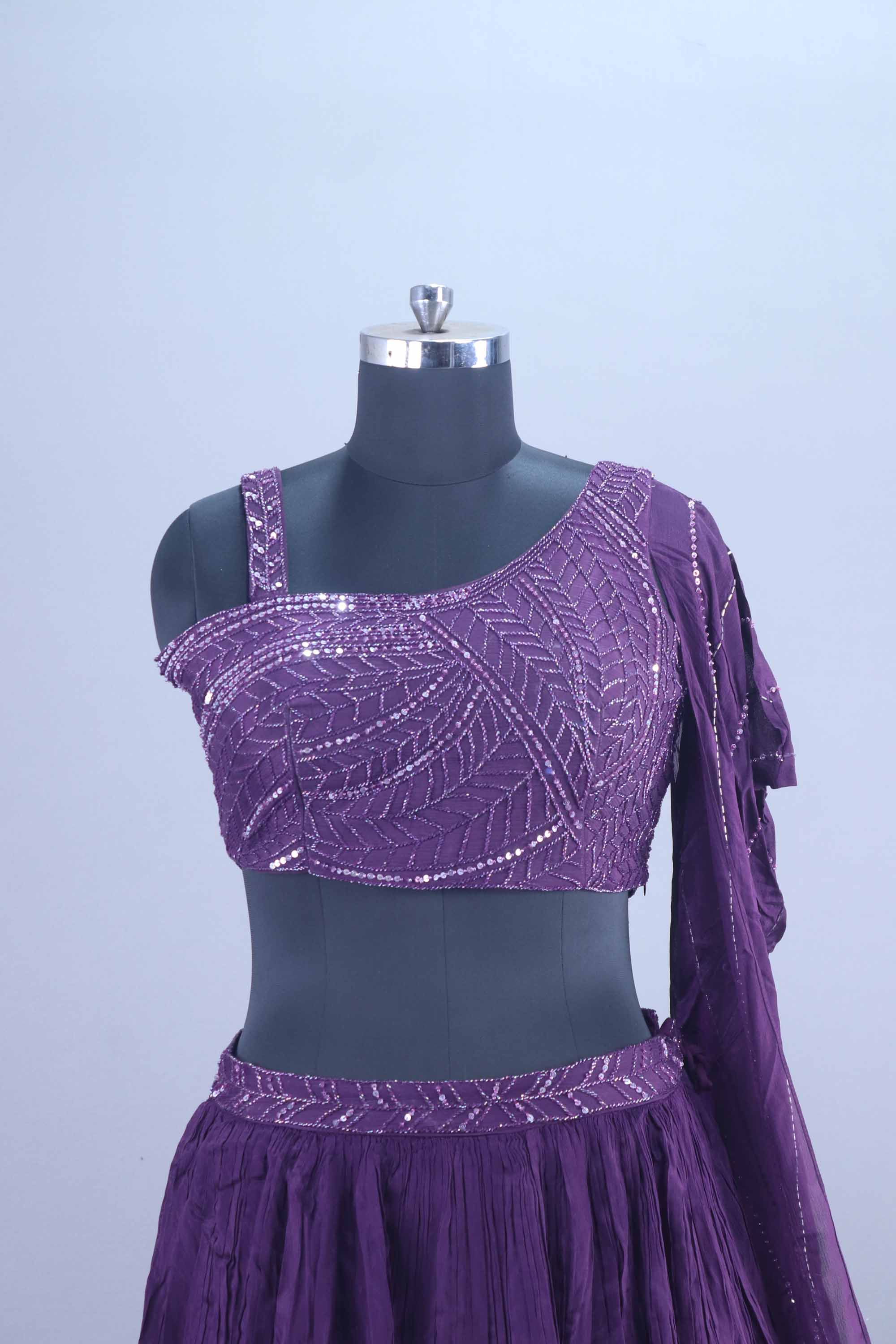 Stylish Purple One Shoulder Sequined Georgette Lehenga Set