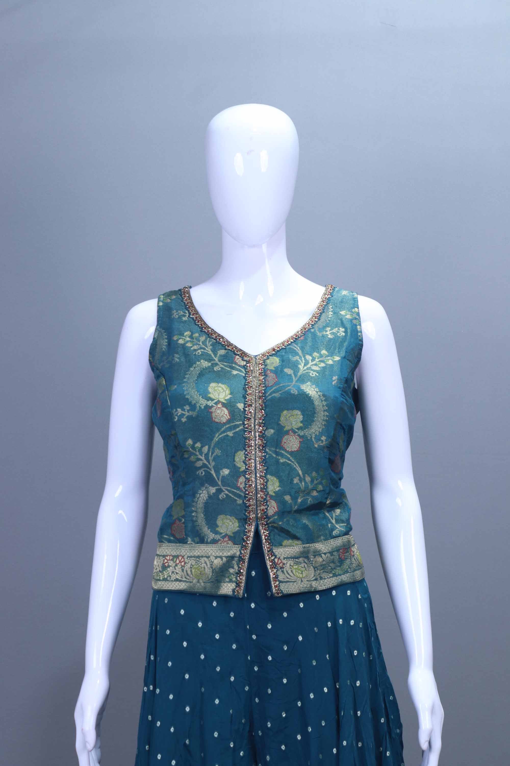 Teal Blue Banarasi Jacket Indo-Western Outfit
